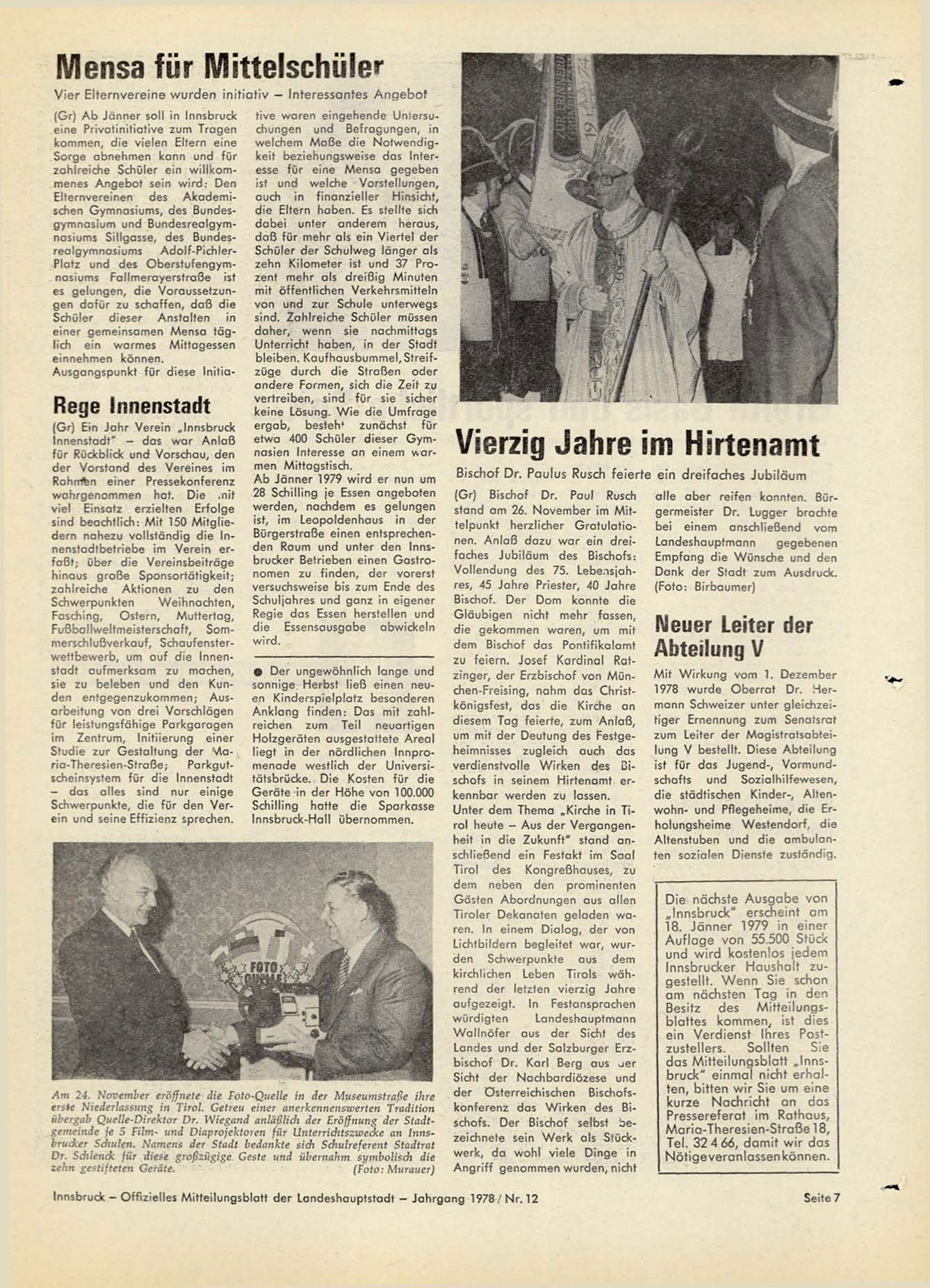 an Innsbrucker Sdiulen. Namens der Stadt bedankte sich Sdiulreferent