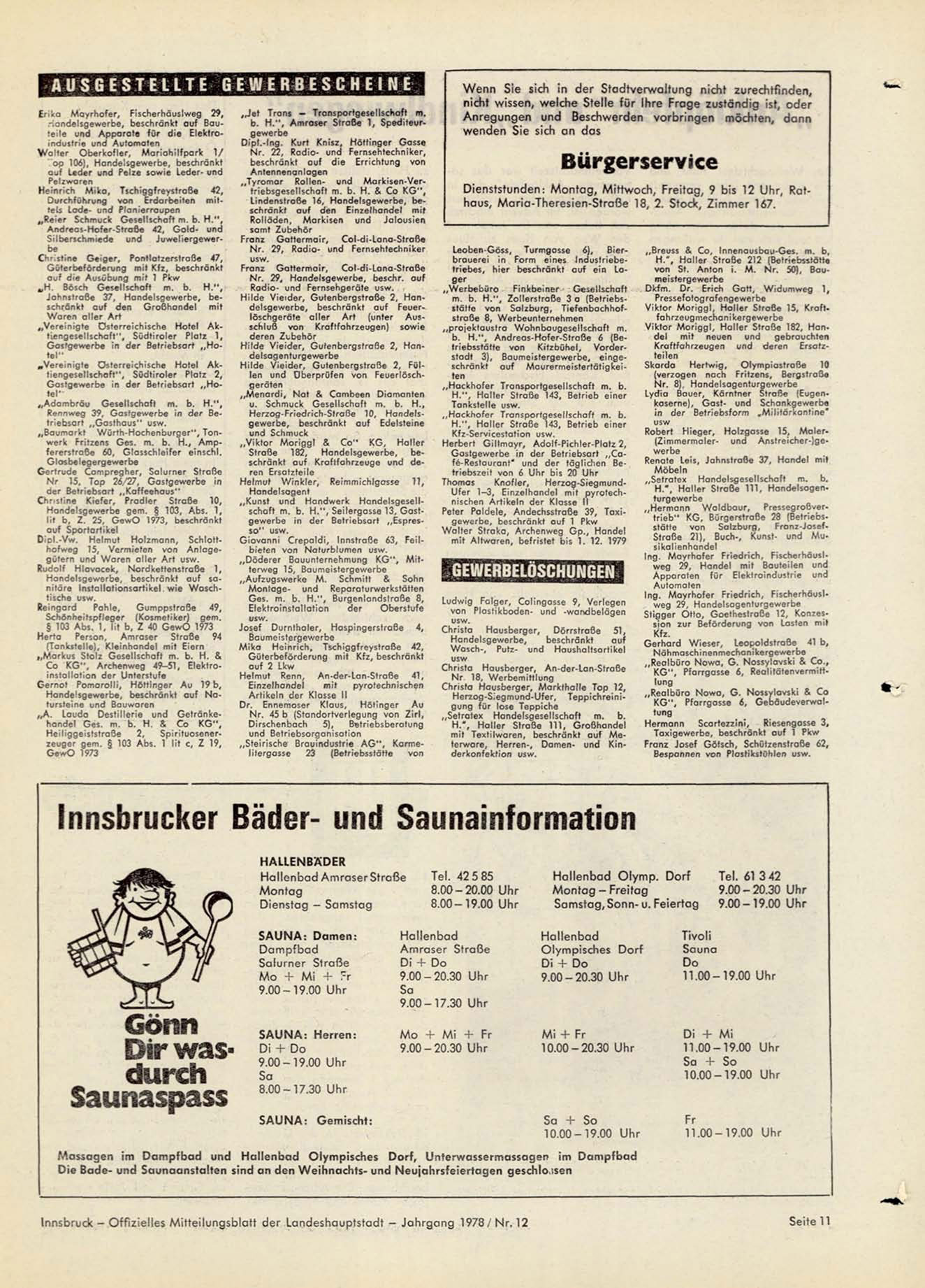 Innsbruck - O f f i z i e l l e s M i t t e i l u n g s b l a t t der L a n d e s h a u p t s t a d t - J a h r g a n g 1 9 7 8 / N r . 12