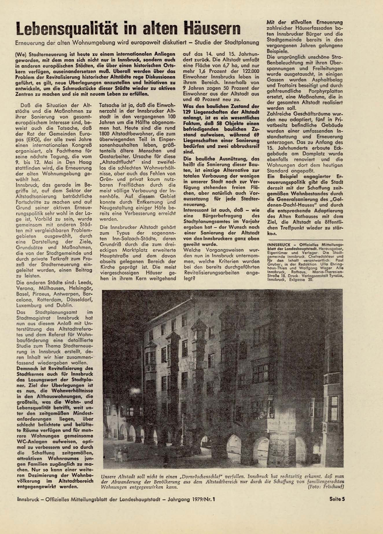 Innsbruck - O f f i z i e l l e s M i t t e i l u n g s b l a t t d e r L a n d e s h a u p t s t a d t - J a h r g a n g 1979/Nr. 1