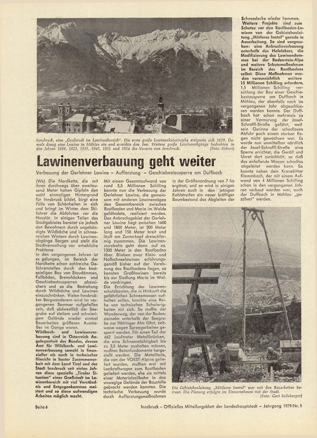 Schutze vor den Rastiboden-Lawinen von der Gebietsbauleitung „Mittleres Inntal" gerade in