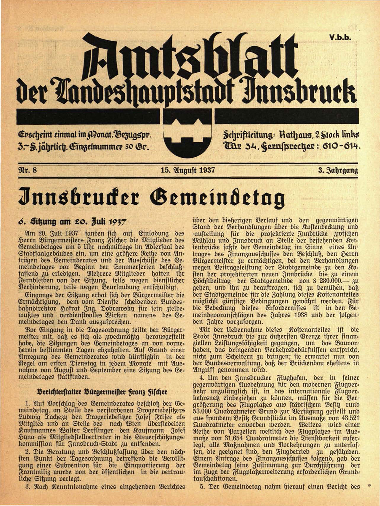 Stadt Innsbruck bis zur äußersten Grenze ihrer finanziellen Leistungsfähigkeit gegangen, um das Bauvorhaben, das dringenden Verkehrsbedürfnissen entspricht,