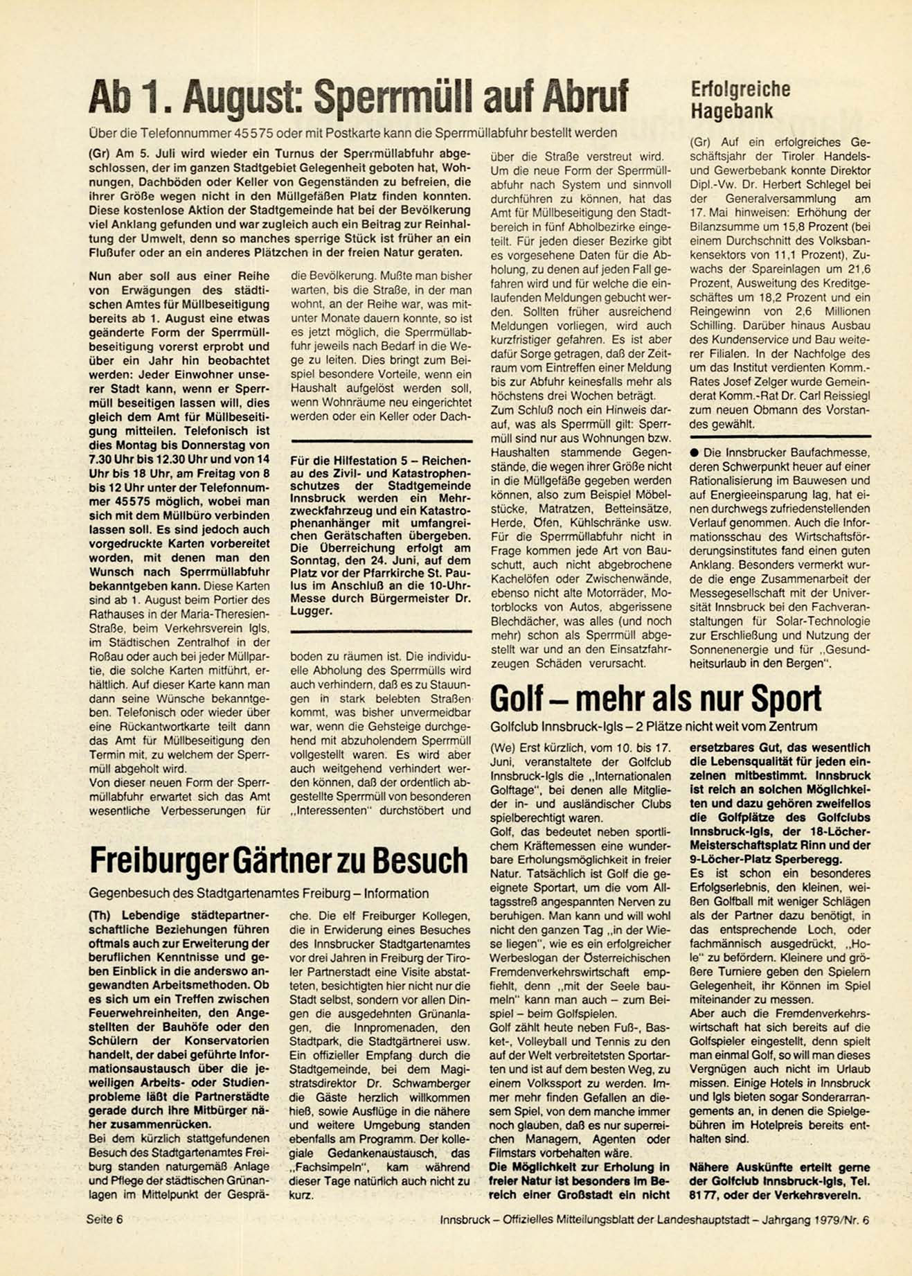 Innsbruck - Offizielles Mitteilungsblatt der Landeshauptstadt - Jahrgang 1979/Nr. 6