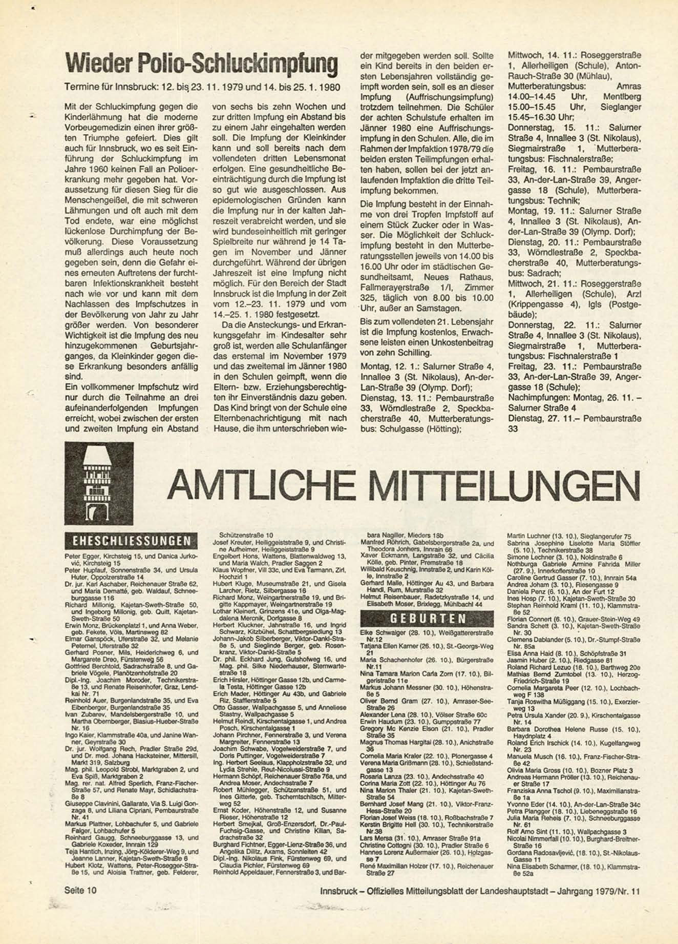 Innsbruck - Offizielles Mitteilungsblatt der Landeshauptstadt - Jahrgang 1979/Nr. 11