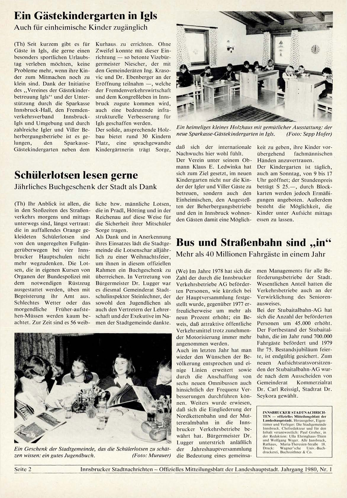 Innsbrucker Stadtnachrichten — Offizielles Mitteilungsblatt der Landeshauptstadt. Jahrgang 1980, Nr. 1