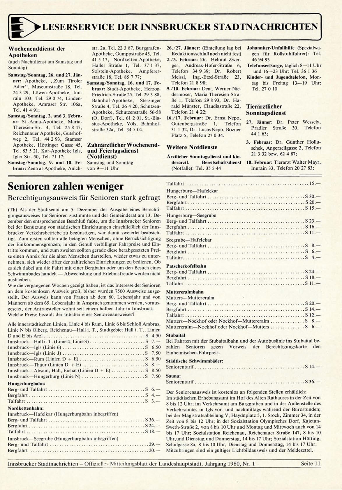 (Th) A l s der Stadtsenat am 5. Dezember der Ausgabe eines Berechtigungsausweises f ü r Senioren zustimmte und der Gemeinderat am 13. Dezember den entsprechenden Beschluß f a ß t e , um die Innsbrucker Senioren