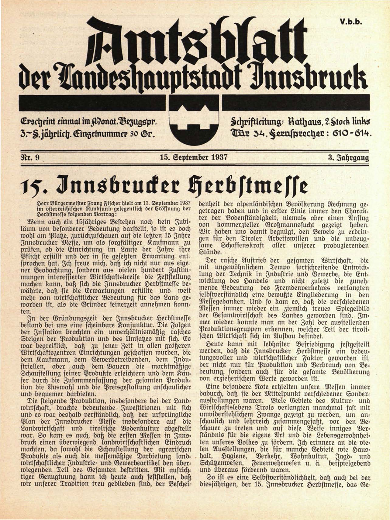 werden, daß die Innsbrucker Herbstmesse ein bedeutungsvoller und wirtschaftlicher Faktor geworden ist.