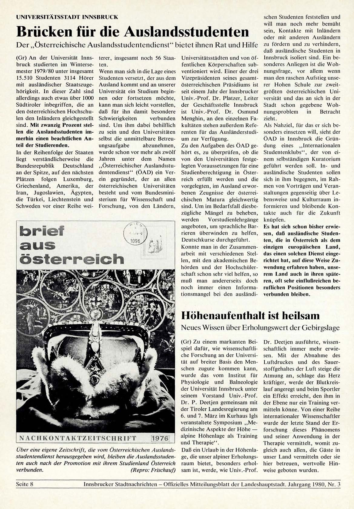 Innsbrucker Stadtnachrichten — Offizielles Mitteilungsblatt der Landeshauptstadt. Jahrgang 1980, Nr. 3