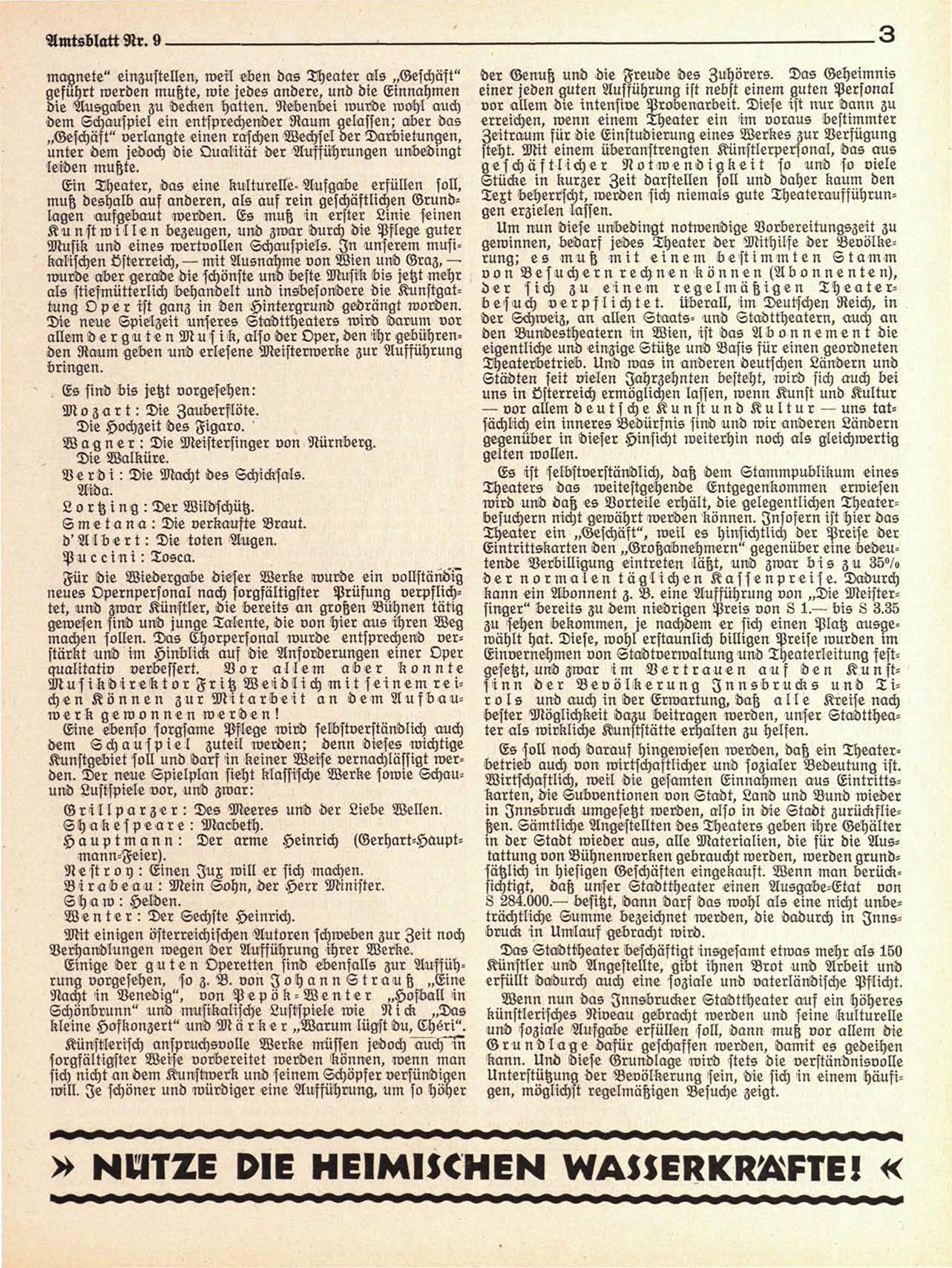 k o n n t e gesetzt, und zwar i m V e r t r a u e n a u f d e n K u n stM u s i k d i r e k t o r Fritz Weidlich m i t seinem rei- s i n n der B e v ö l k e r u n g I n n s b r u c k s und Tichen K ö n n e n z u r M i t a r b e i t a n d e m A u f b a u - r o l s und auch in der Erwartung, datz a l l e Kreise nach