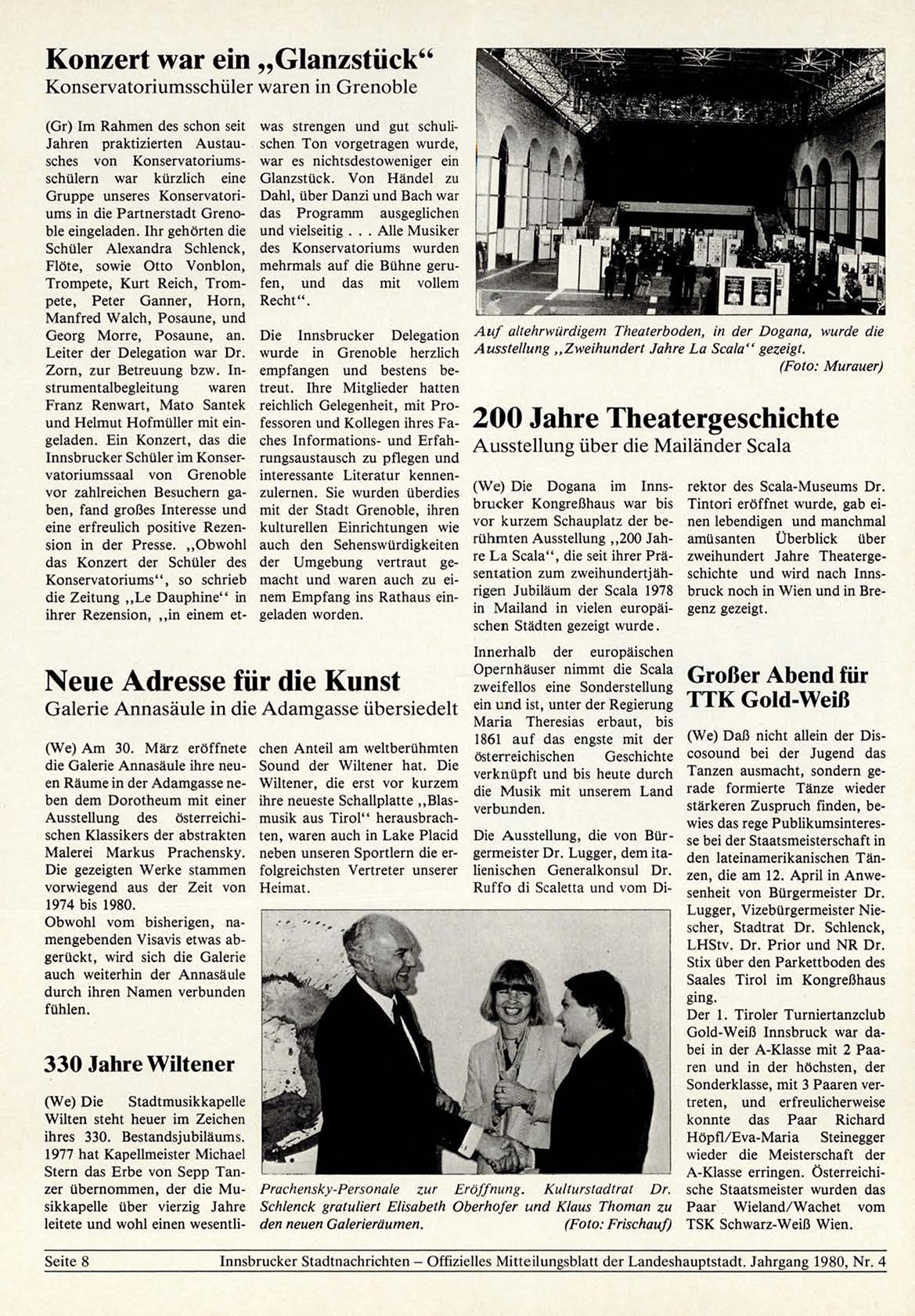 Innsbrucker Stadtnachrichten - Offizielles Mitteilungsblatt der Landeshauptstadt. Jahrgang 1980, Nr. 4