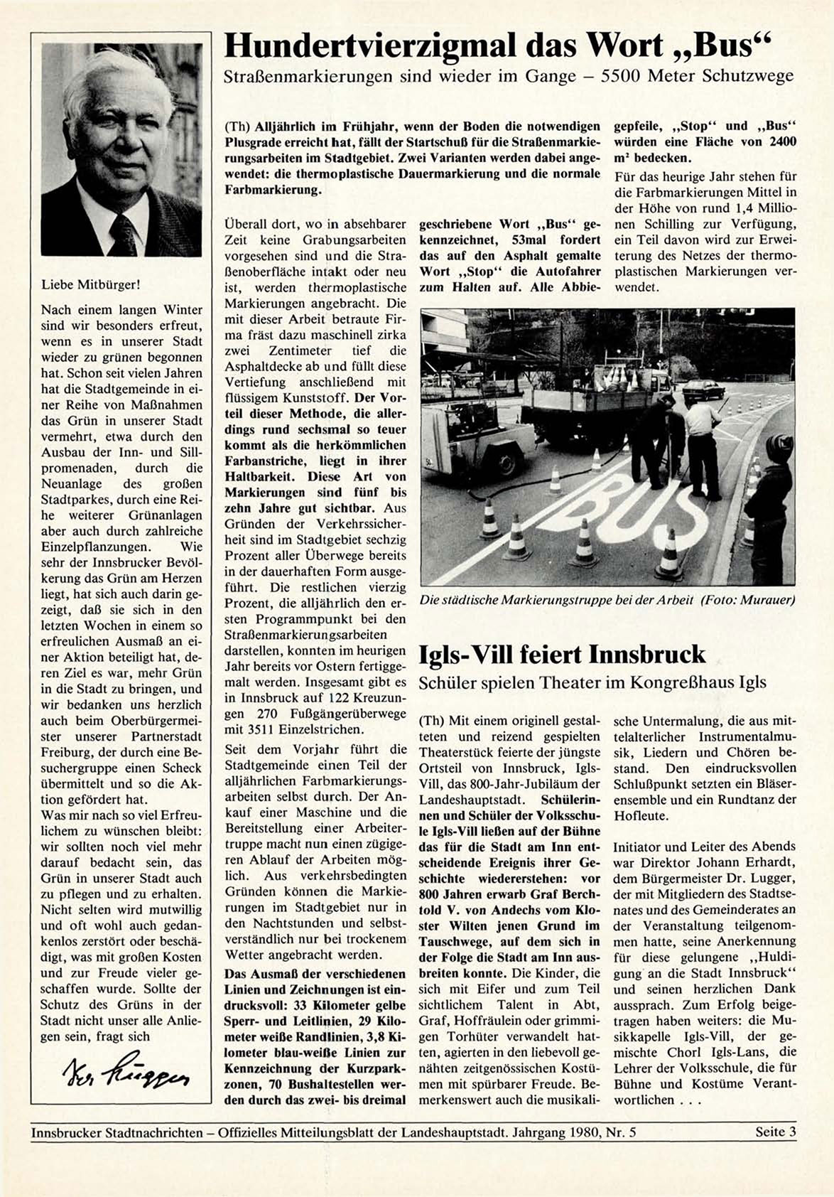 Innsbrucker Stadtnachrichten - Offizielles Mitteilungsblatt der Landeshauptstadt. Jahrgang 1980, N r . 5