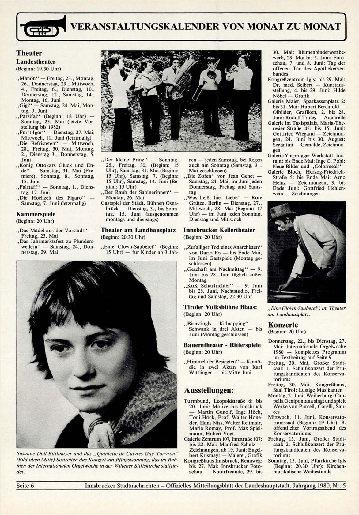 Innsbrucker Stadtnachrichten - Offizielles Mitteilungsblatt der Landeshauptstadt. Jahrgang 1980, Nr. 5
