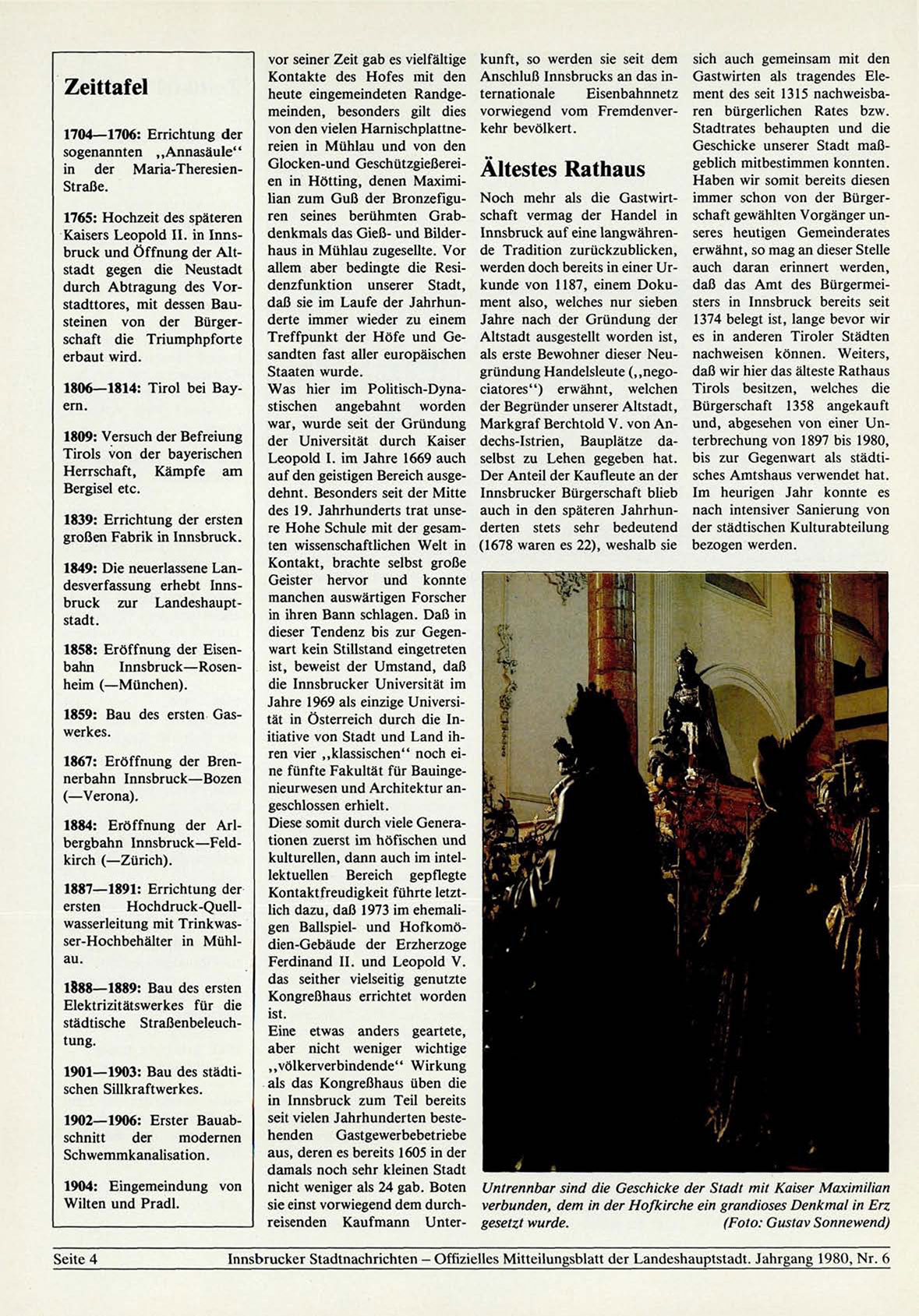 Innsbrucker Stadtnachrichten — Offizielles Mitteilungsblatt der Landeshauptstadt. Jahrgang 1980, Nr. 6