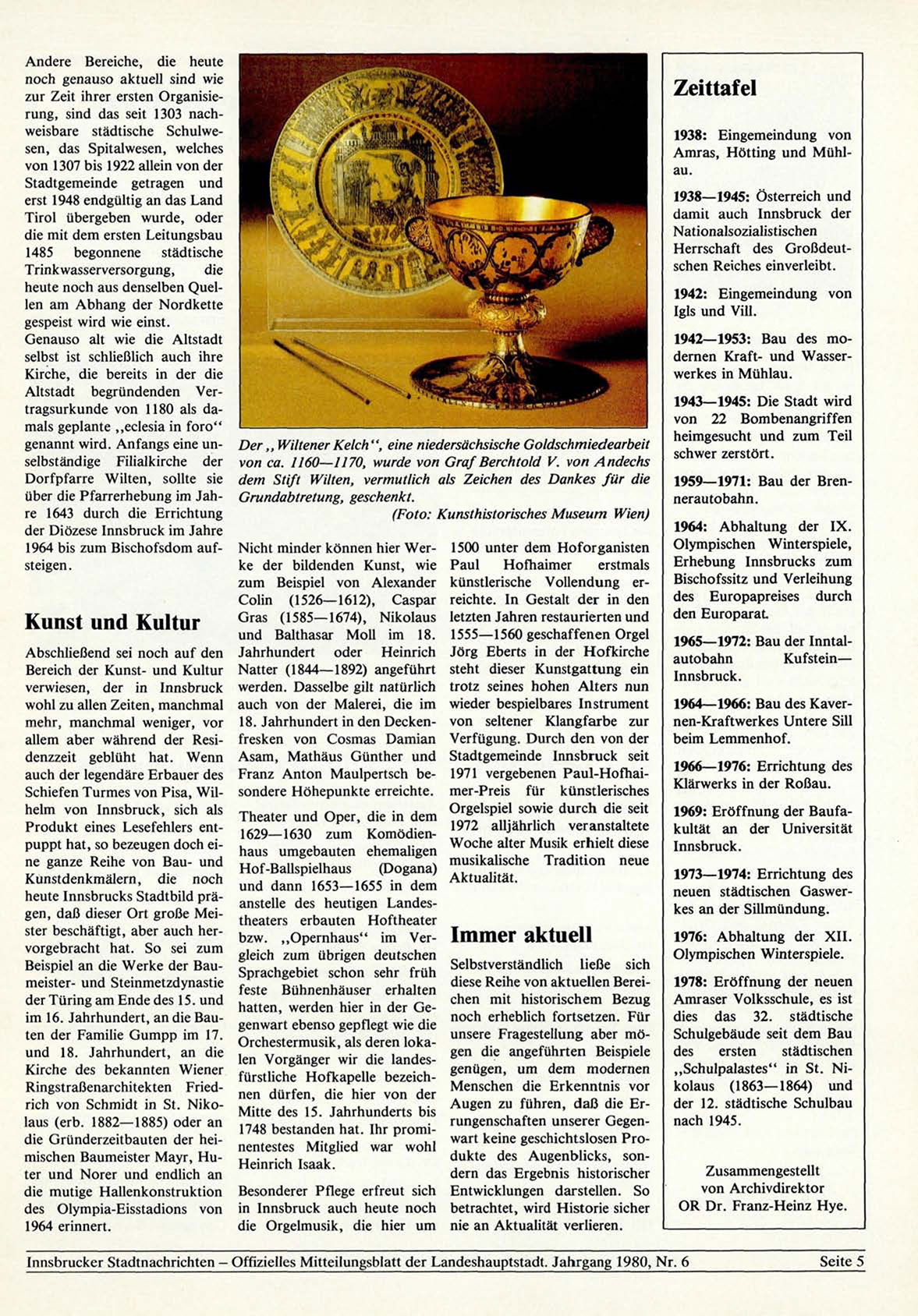 Innsbrucker Stadtnachrichten — Offizielles Mitteilungsblatt der Landeshauptstadt. Jahrgang 1980, Nr. 6