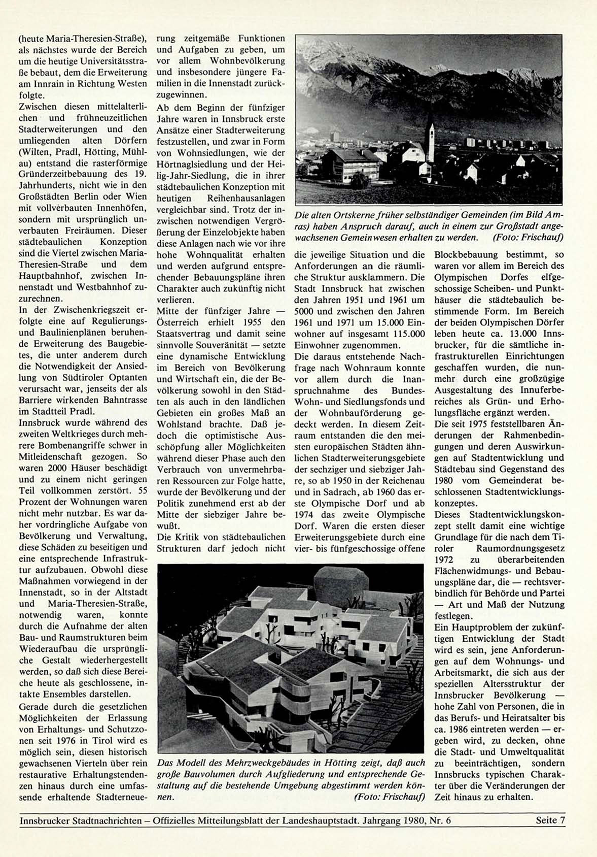 Innsbrucker Stadtnachrichten — Offizielles Mitteilungsblatt der Landeshauptstadt. Jahrgang 1980, N r . 6