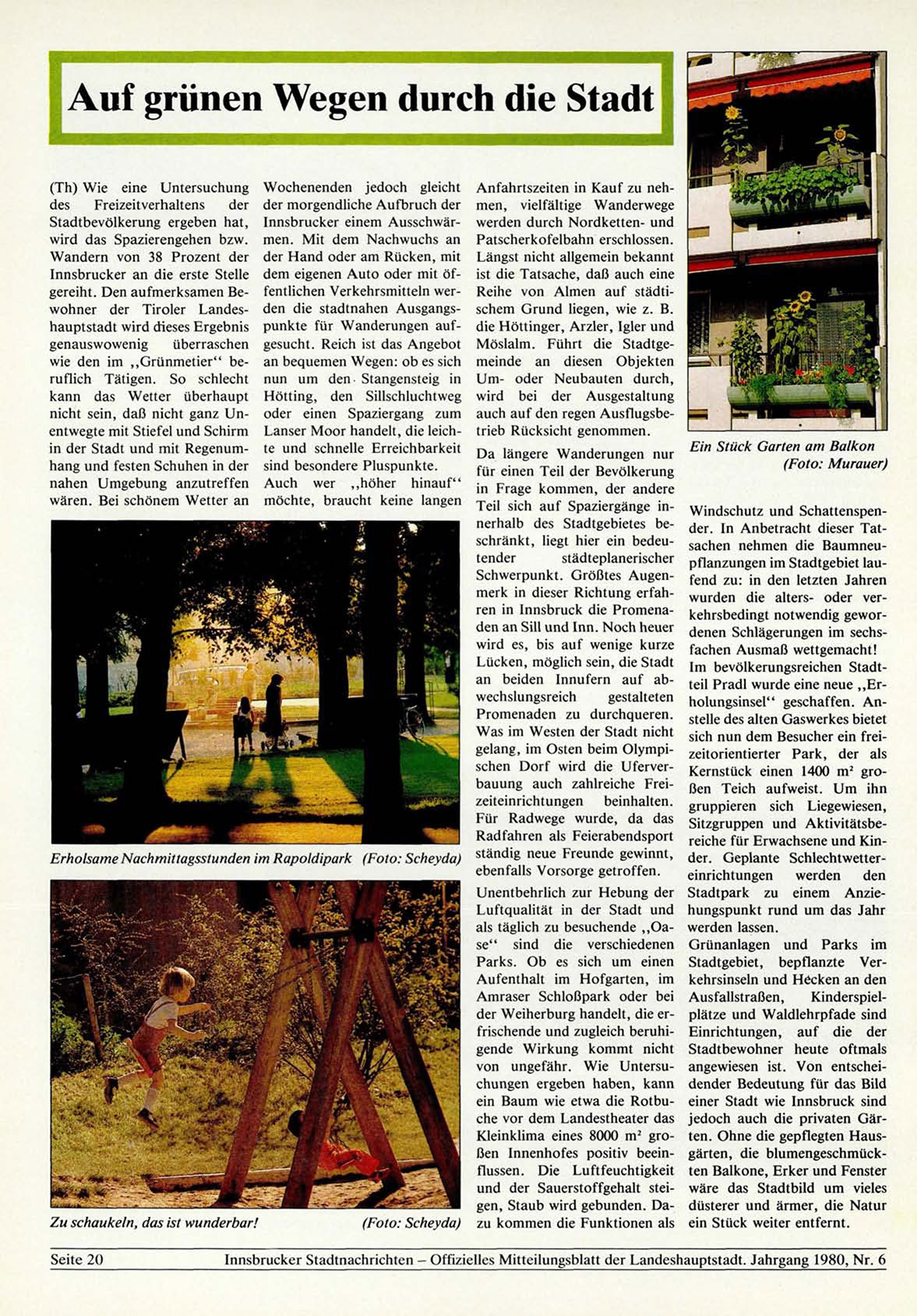 Innsbrucker Stadtnachrichten — Offizielles Mitteilungsblatt der Landeshauptstadt. Jahrgang 1980, N r . 6