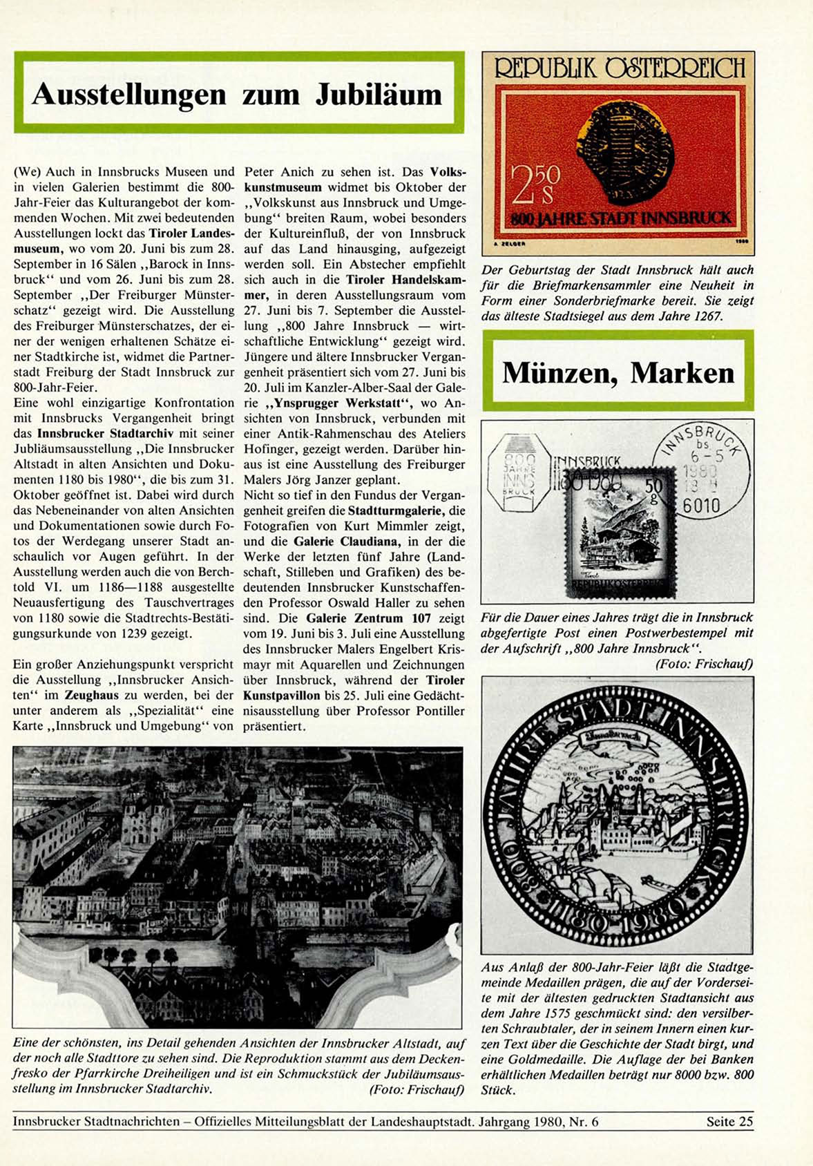 Innsbrucker Stadtnachrichten - Offizielles Mitteilungsblatt der Landeshauptstadt. Jahrgang 1980, Nr. 6