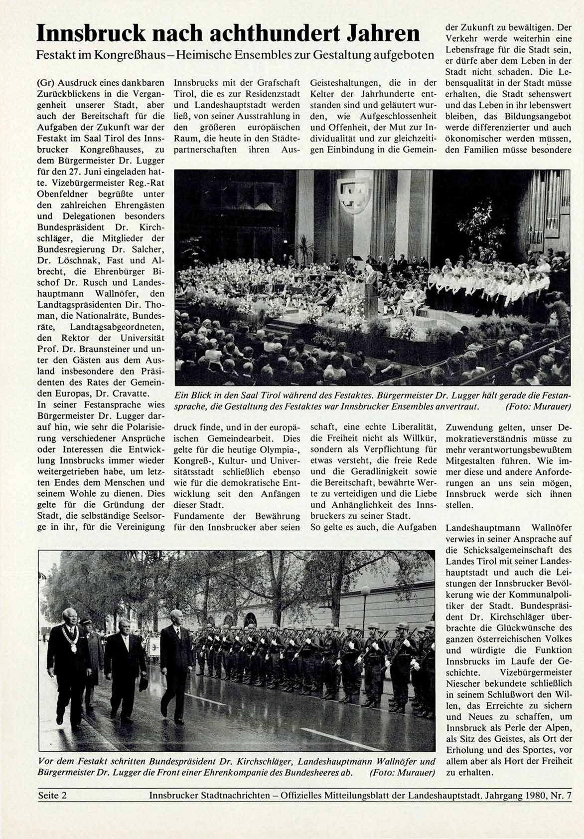 Innsbrucker Stadtnachrichten - Offizielles Mitteilungsblatt der Landeshauptstadt. Jahrgang 1980, N r . 7