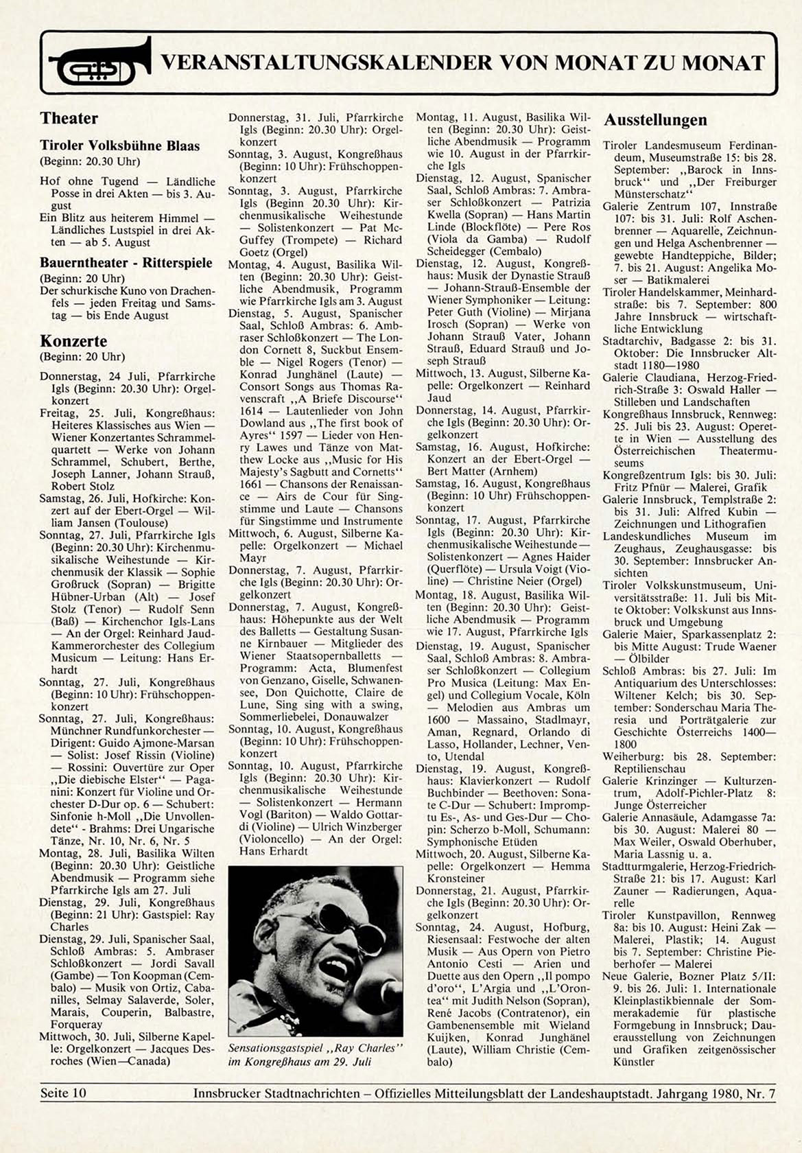 Innsbrucker Stadtnachrichten - Offizielles Mitteilungsblatt der Landeshauptstadt. Jahrgang 1980, N r . 7