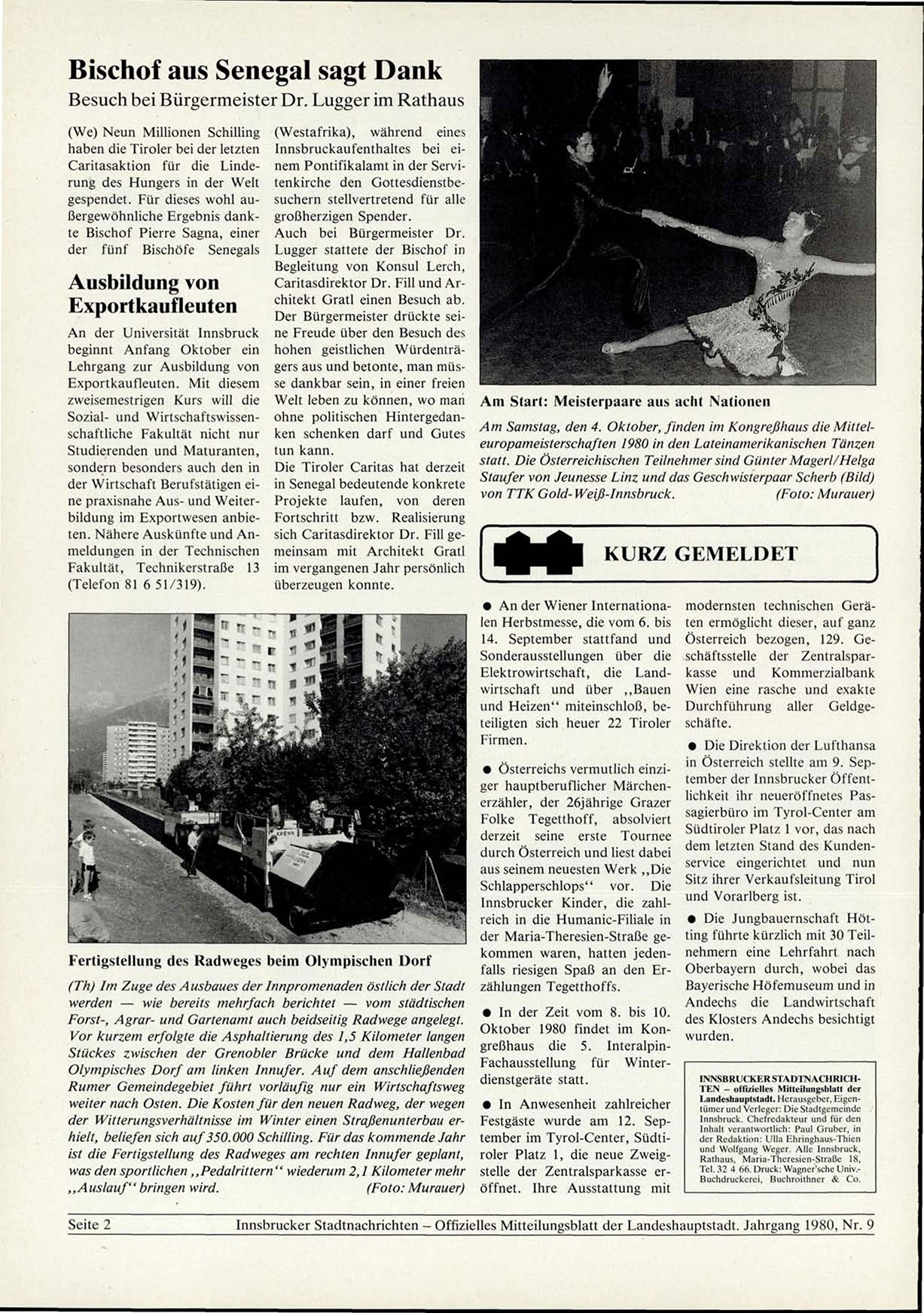 Innsbrucker Stadtnachrichten - Offizielles Mitteilungsblatt der Landeshauptstadt. Jahrgang 1980, N r . 9
