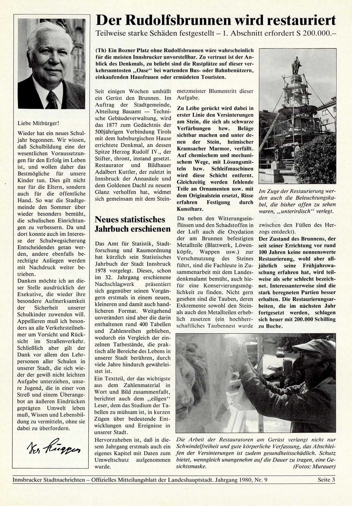 Innsbrucker Stadtnachrichten - Offizielles Mitteilungsblatt der Landeshauptstadt. Jahrgang 1980, N r . 9