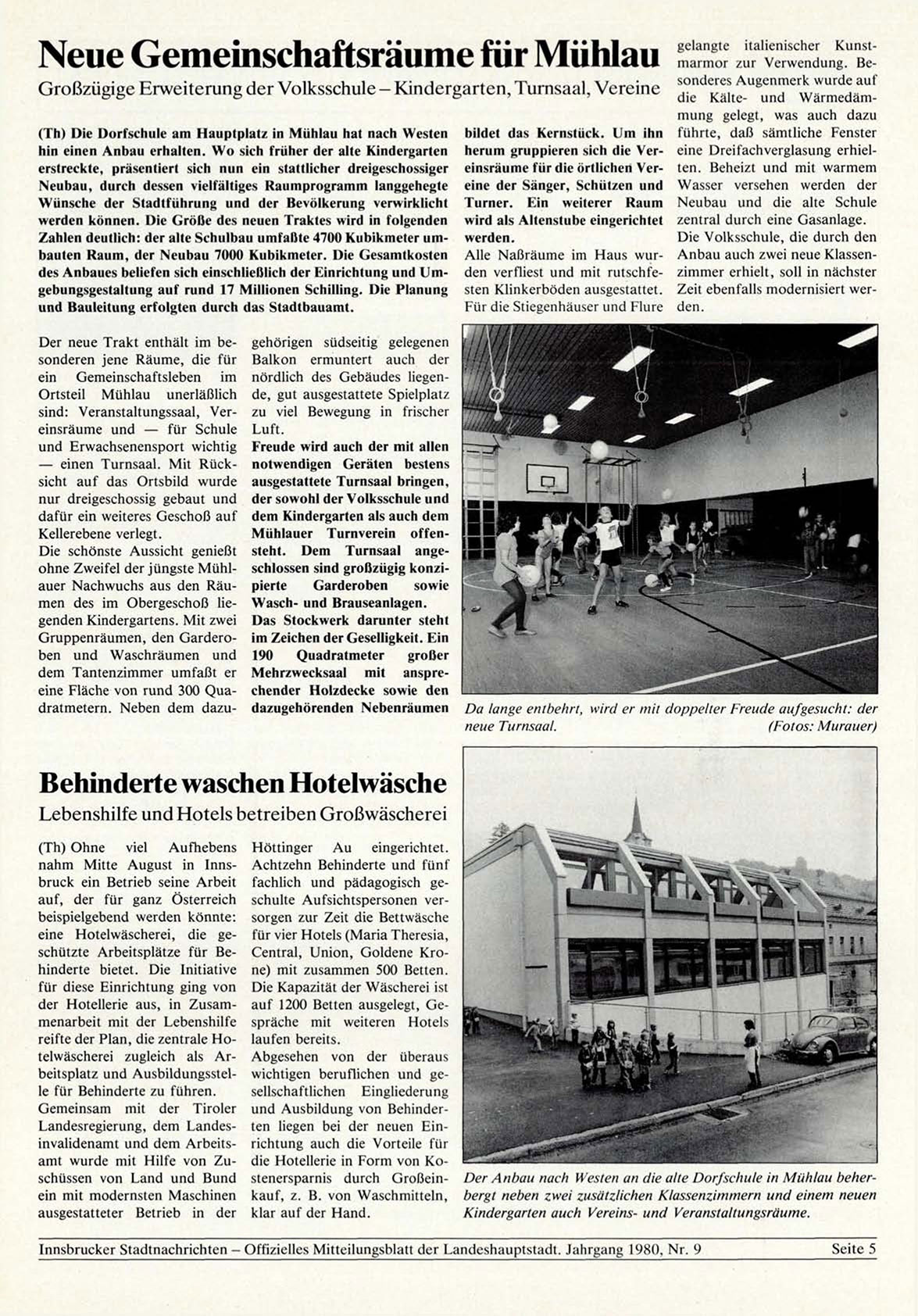 Innsbrucker Stadtnachrichten - Offizielles Mitteilungsblatt der Landeshauptstadt. Jahrgang 1980, Nr. 9