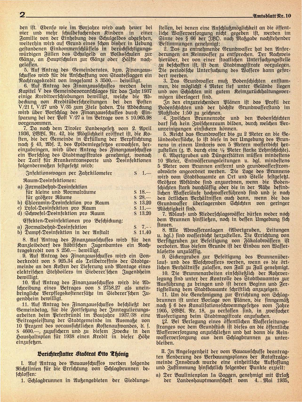 Gemeindetag, für die Fortsetzung der Innregulierungsarbeiten beim Peterbründl im Baujahre 1937/38 eine