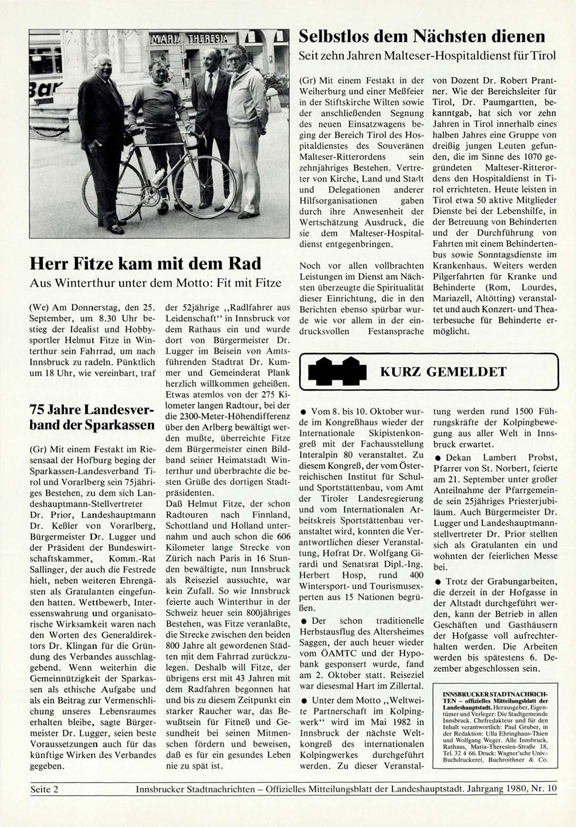 Innsbrucker Stadtnachrichten - Offizielles Mitteilungsblatt der Landeshauptstadt. Jahrgang 1980, N r . 10