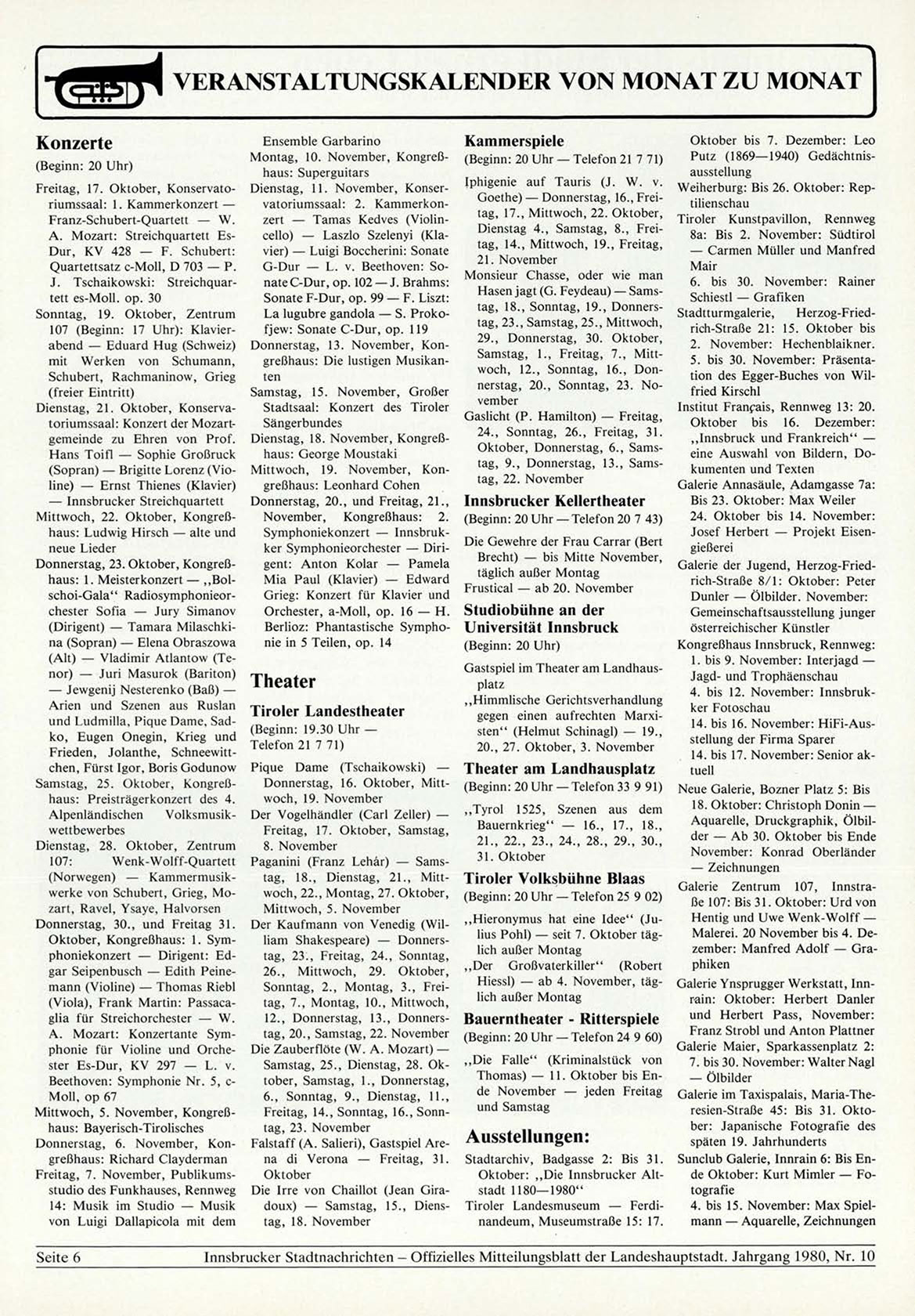 Innsbrucker Stadtnachrichten - Offizielles Mitteilungsblatt der Landeshauptstadt. Jahrgang 1980, N r . 10