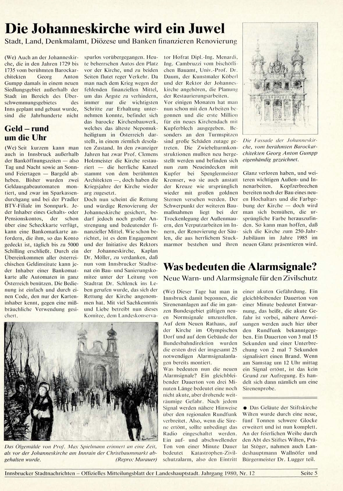 Innsbrucker Stadlnachrichten - Offizielles Mitteilungsblatt der Landeshauptstadt. Jahrgang L980, Nr. 12