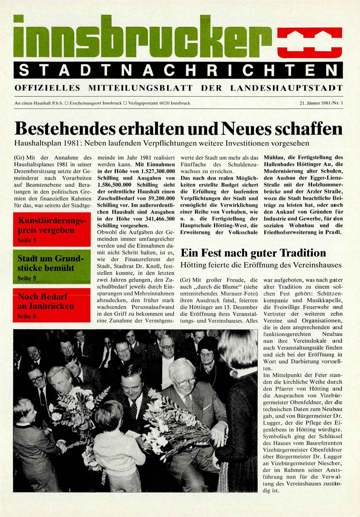 Haushaltsplan 1981: Neben laufenden Verpflichtungen weitere Investitionen vorgesehen