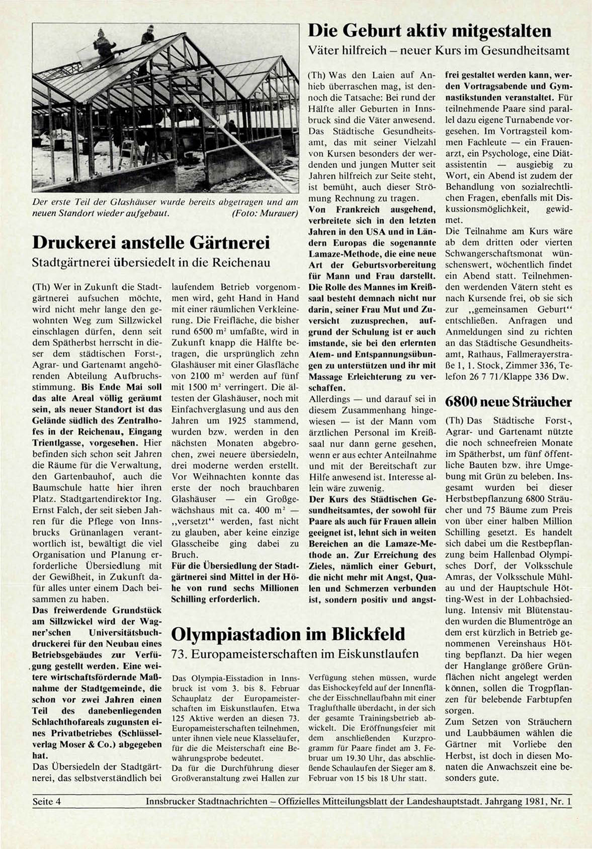 Innsbrucker Stadtnachrichten - Offizielles Mitteilungsblatt der Landeshauptstadt. Jahrgang 1981, Nr. 1