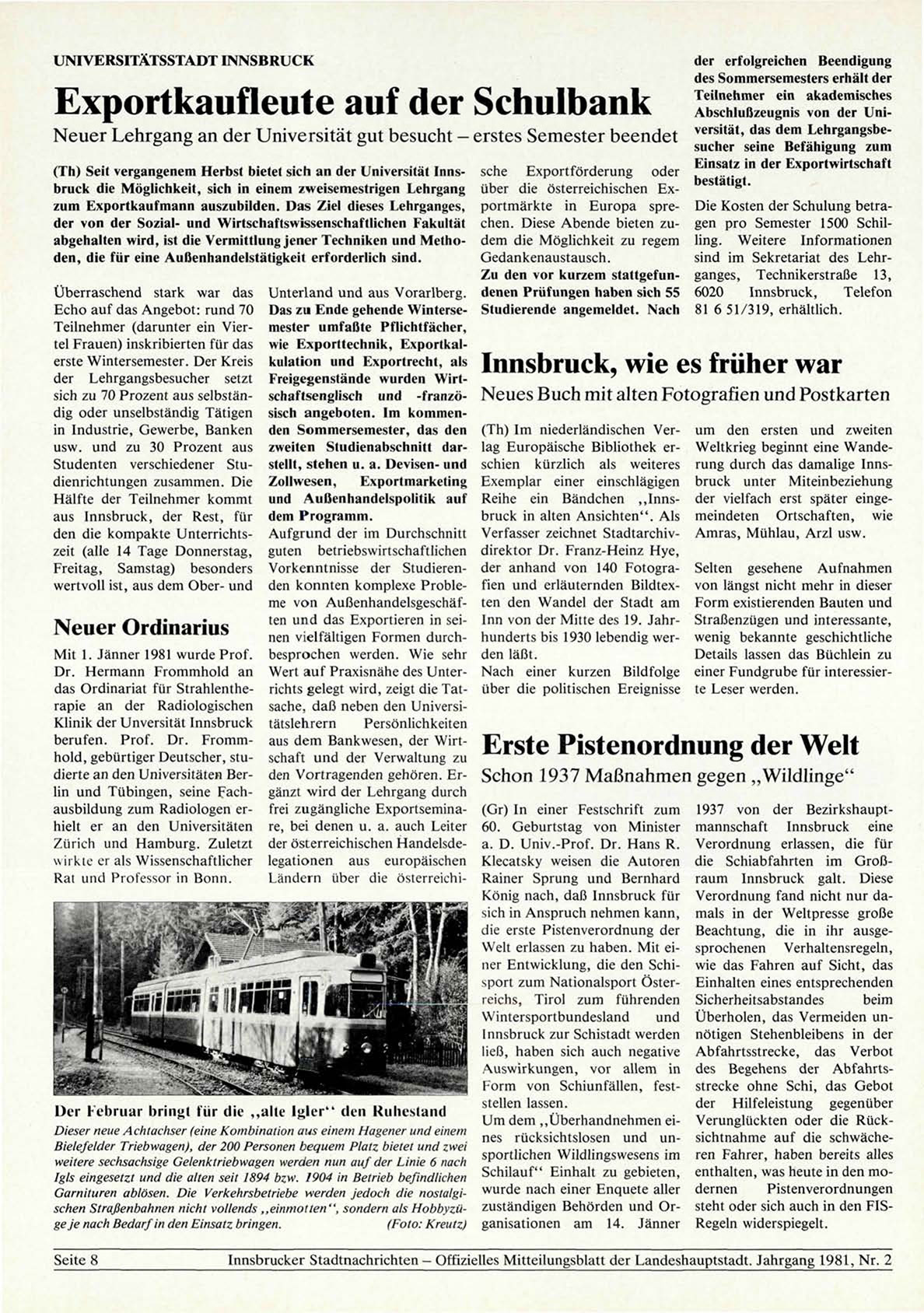 Innsbrucker Stadtnachrichten — Offizielles Mitteilungsblatt der Landeshauptstadt. Jahrgang 1981, Nr. 2