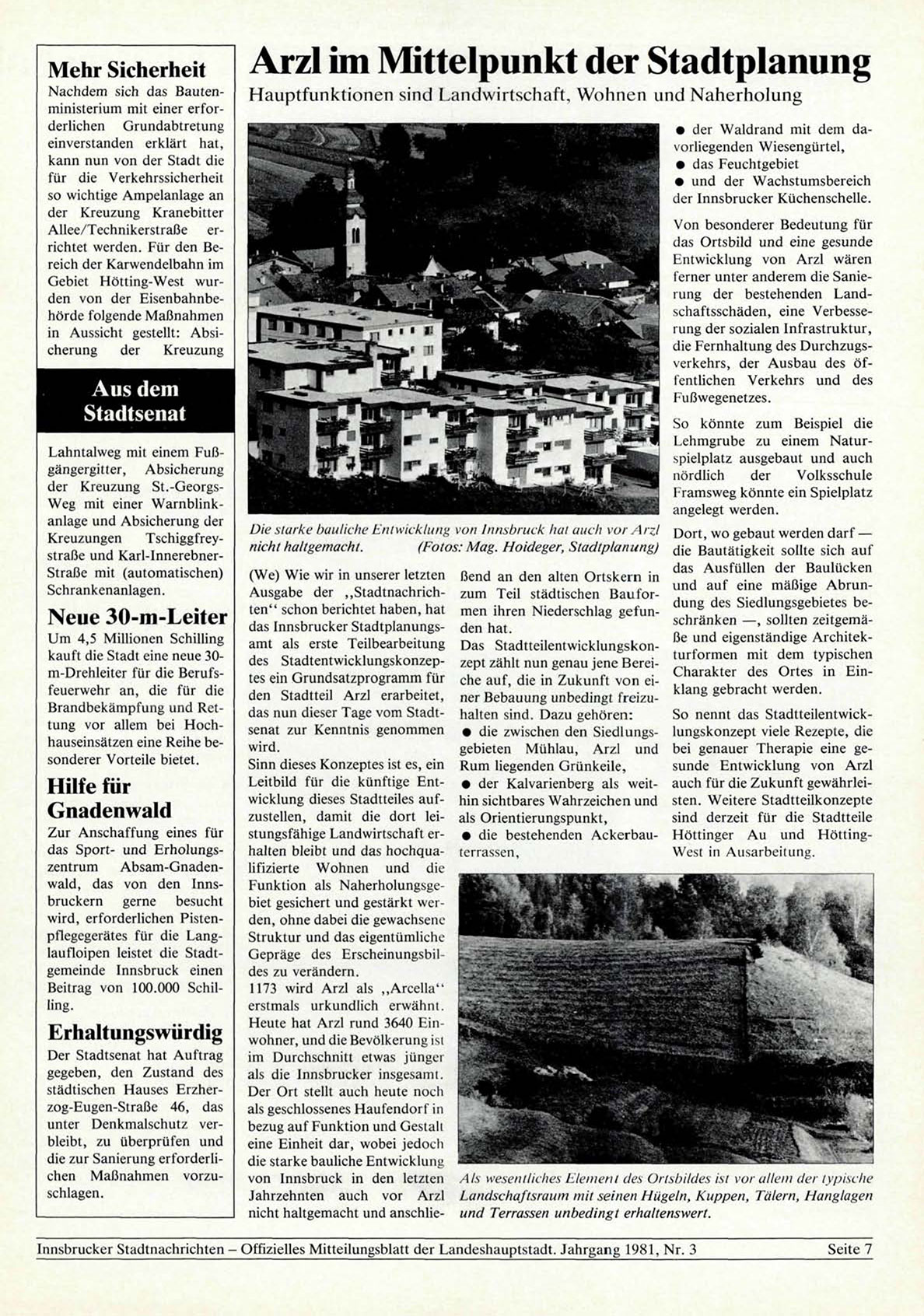 Innsbrucker Stadtnachrichten - Offizielles Mitteilungsblatt der Landeshauptstadt. Jahrgang 1981, Nr. 3
