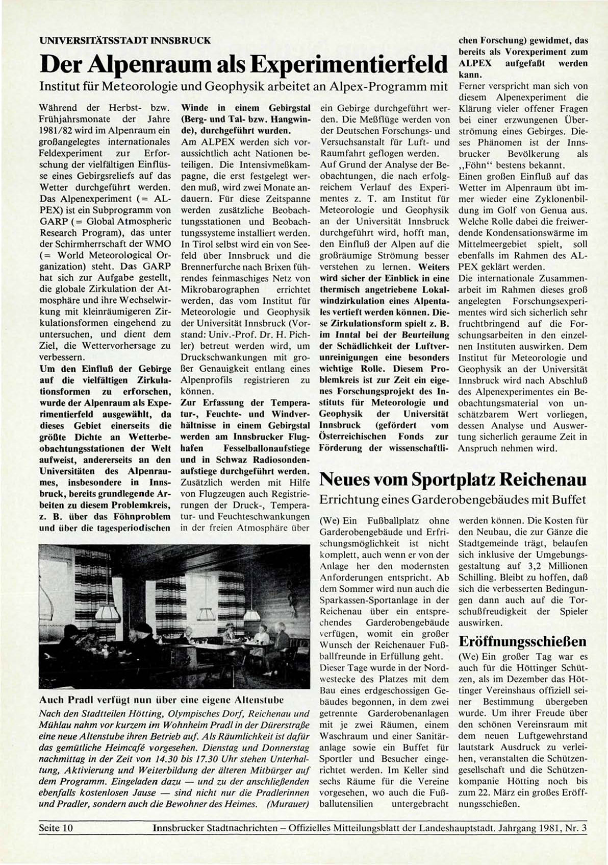 Innsbrucker Stadtnachrichten - Offizielles Mitteilungsblatt der Landeshauptstadt. Jahrgang 1981, Nr. 3