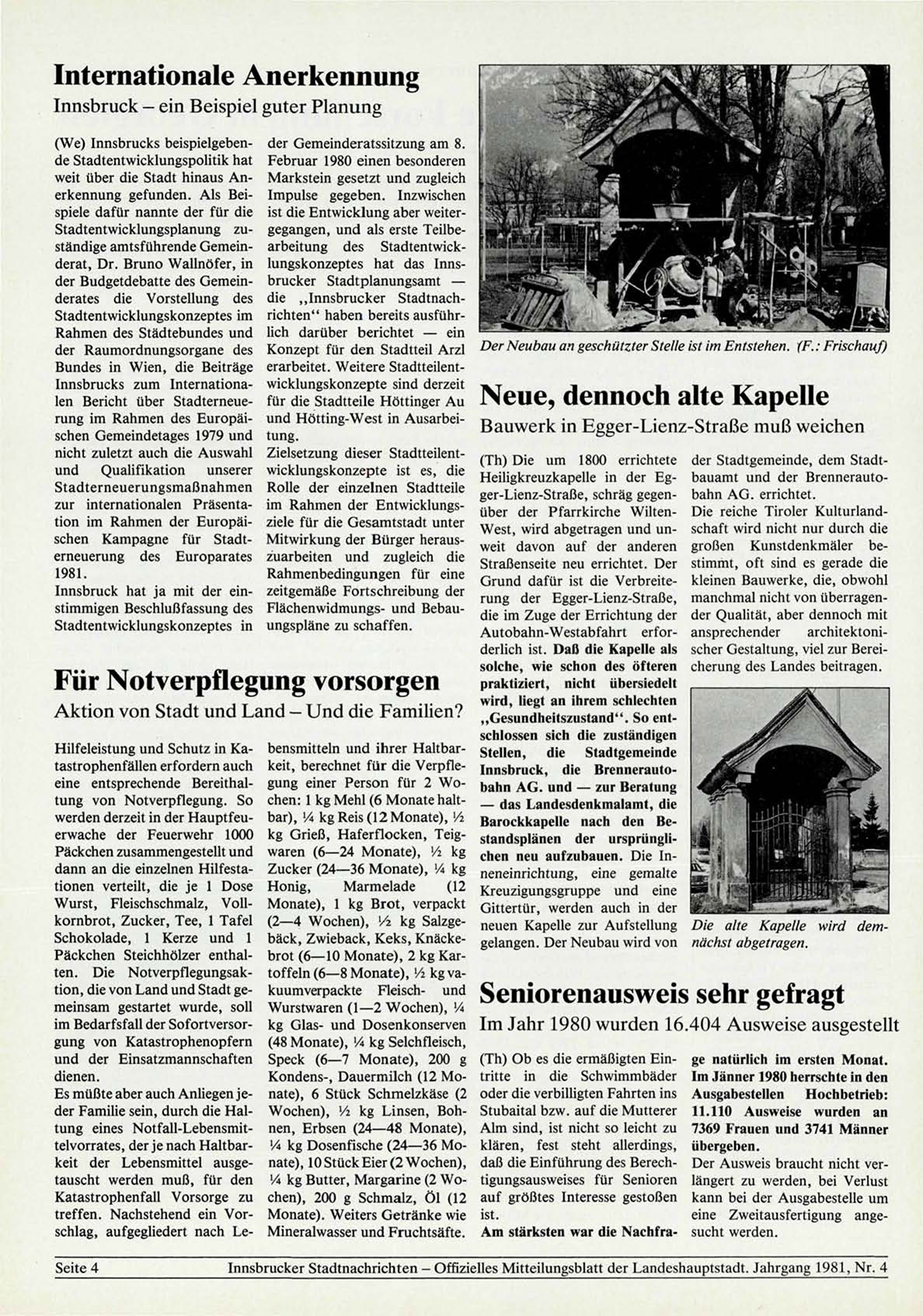 Innsbrucker Stadtnachrichten - Offizielles Mitteilungsblatt der Landeshauptstadt. Jahrgang 1981, Nr. 4