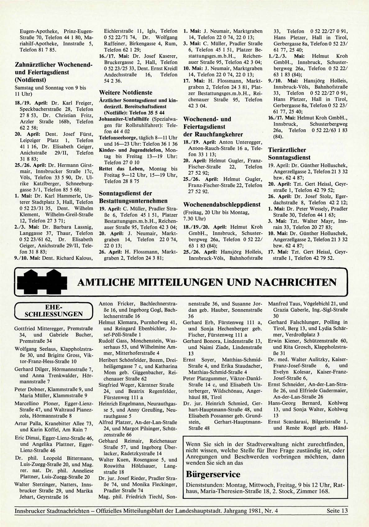 Innsbrucker Stadtnachrichten - Offizielles Mitteilungsblatt der Landeshauptstadt. Jahrgang 1981, Nr. 4