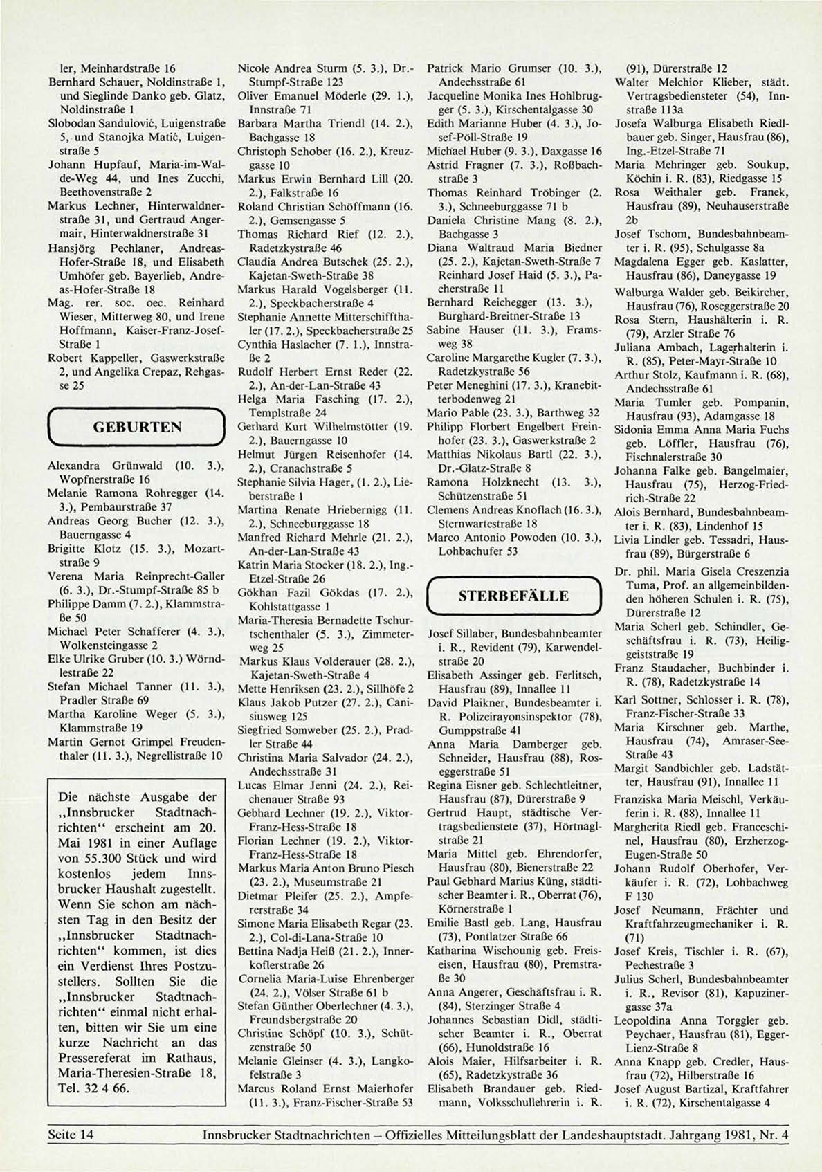 Mai 1981 in einer Auflage Florian Lechner (19. 2.), ViktorFranz-Hess-Straße 18