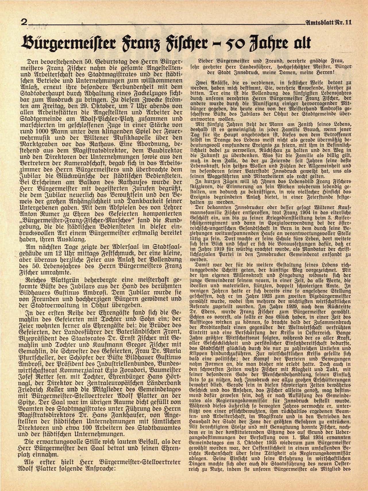 Den bevorstehenden 50. Geburtstag des Herrn Bürgermeisters Franz Fischer nahm die gesamte Angestelltenund Arbeiterschaft des Stadtmagistrates und der städtischen Betriebe und Unternehmungen zum willkommenen