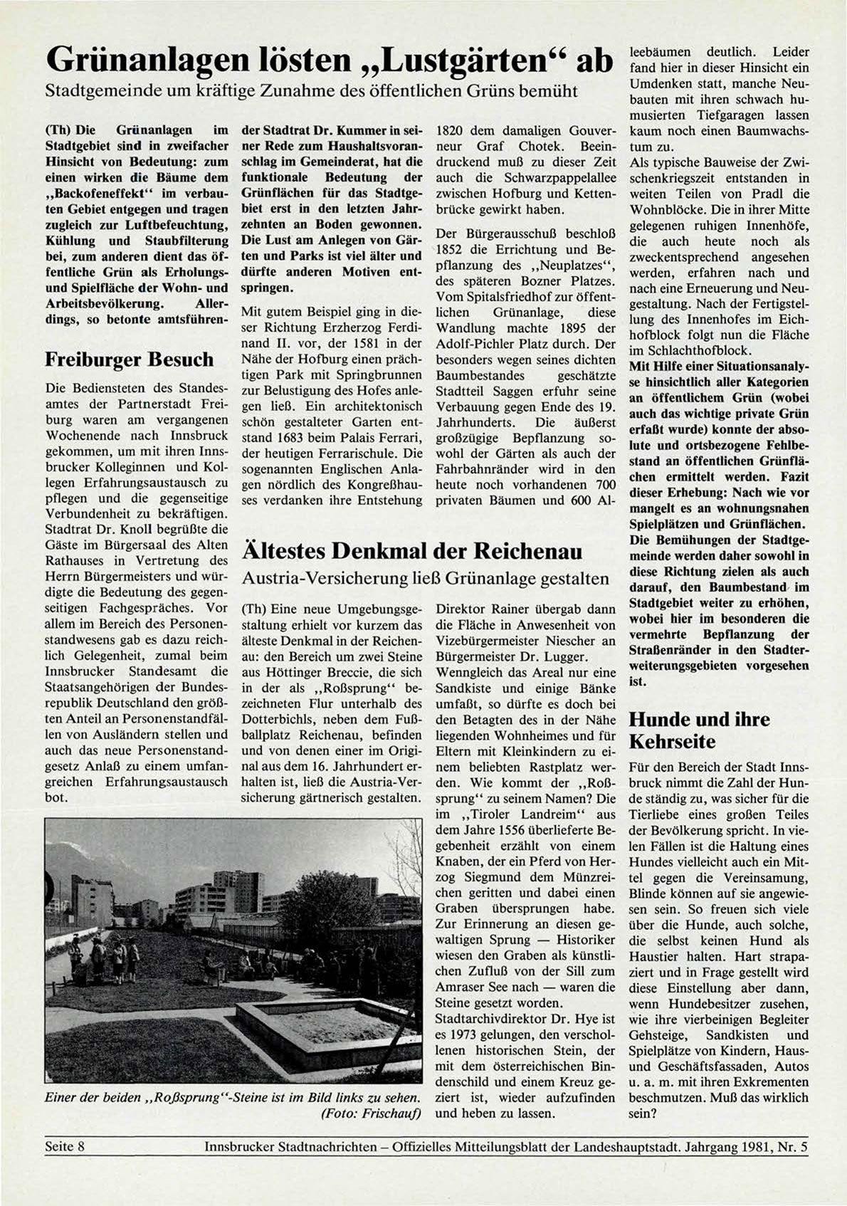 Innsbrucker Stadtnachrichten - Offizielles Mitteilungsblatt der Landeshauptstadt. Jahrgang 1981, Nr. 5