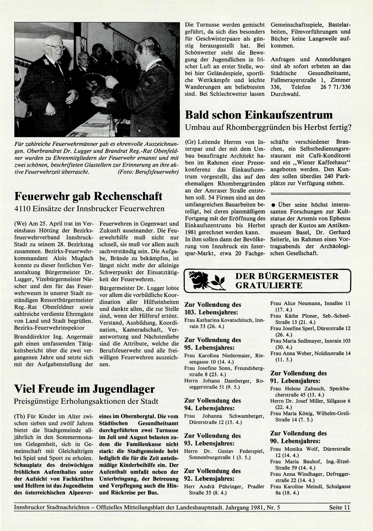 Innsbrucker Stadtnachrichten - Offizielles Mitteilungsblatt der Landeshauptstadt. Jahrgang 1981, Nr. 5