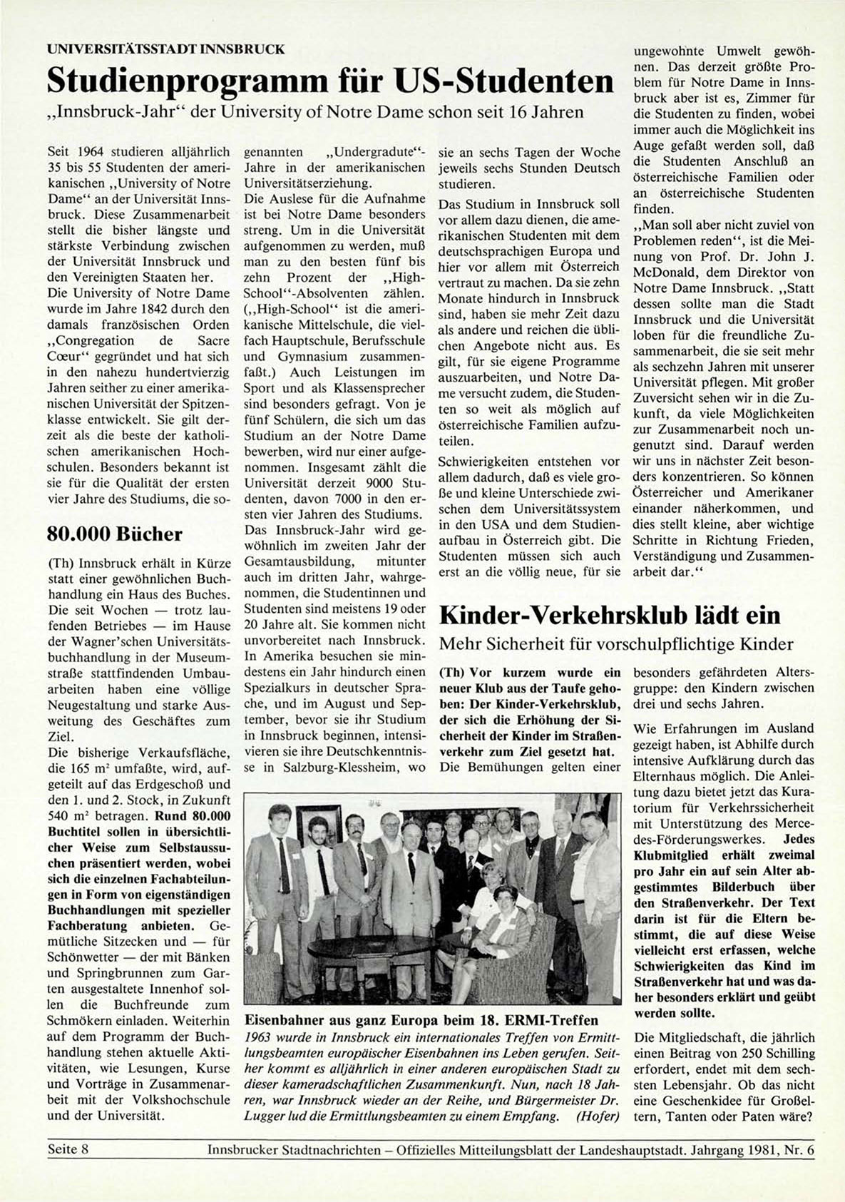 ,,Innsbruck-Jahr" der University of Notre Dame schon seit 16 Jahren