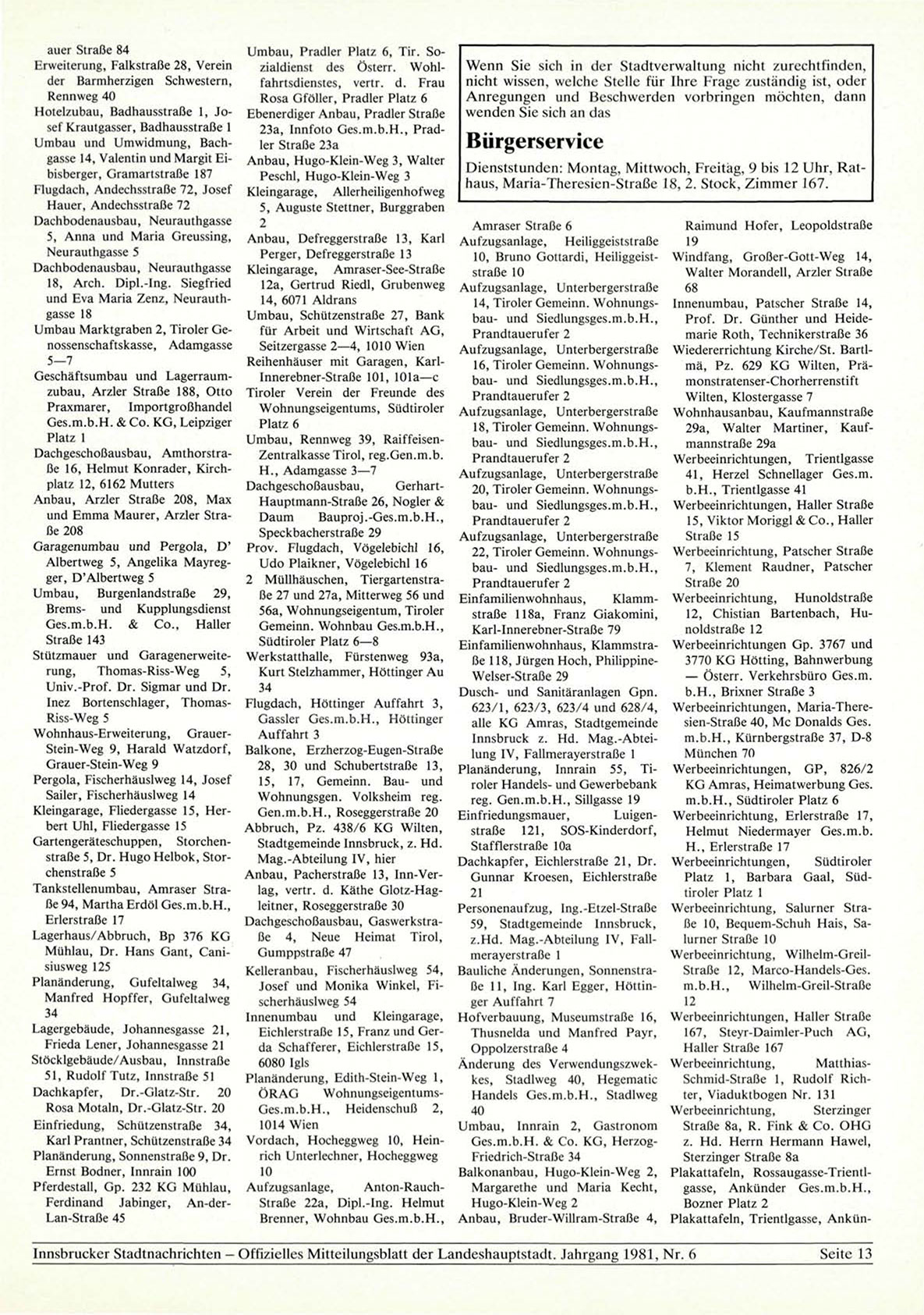 Innsbrucker Stadtnachrichten — Offizielles Mitteilungsblatt der Landeshauptstadt. Jahrgang 1981, Nr. 6