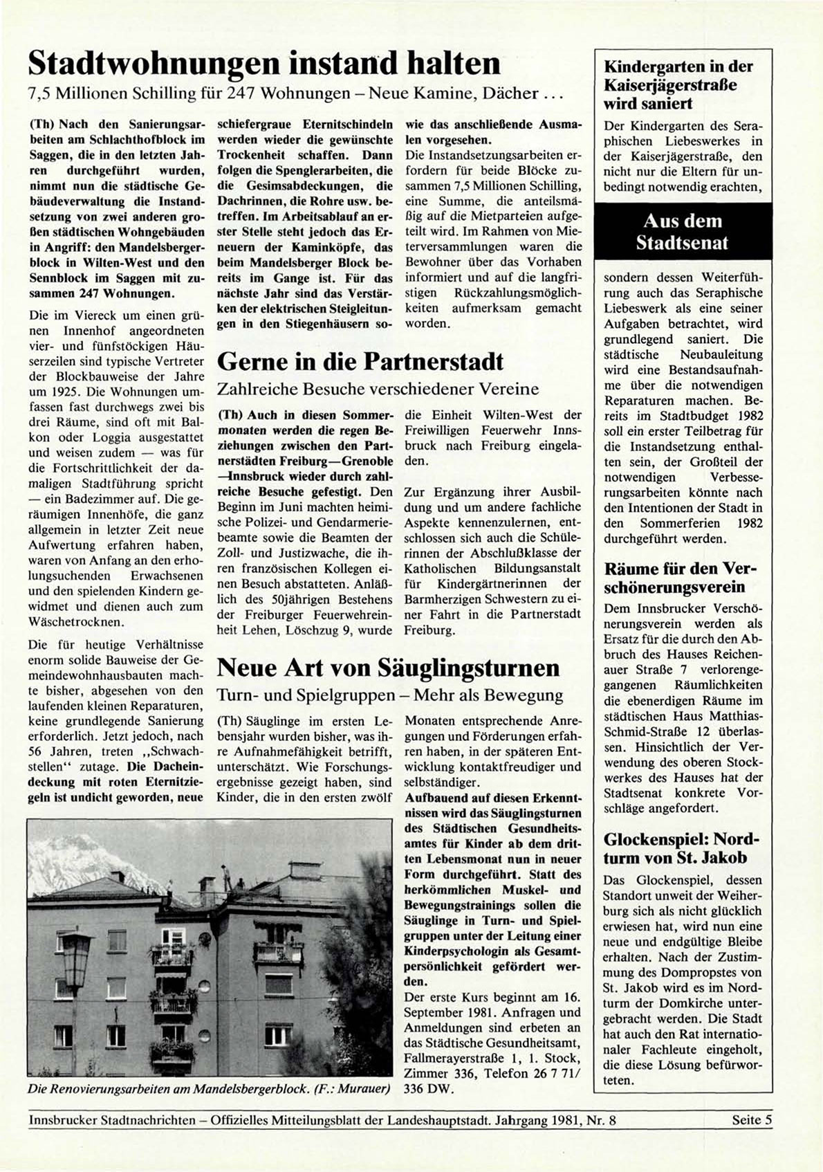Innsbrucker Stadtnachrichten - Offizielles Mitteilungsblatt der Landeshauptstadt. Jahrgang 1981, Nr. 8