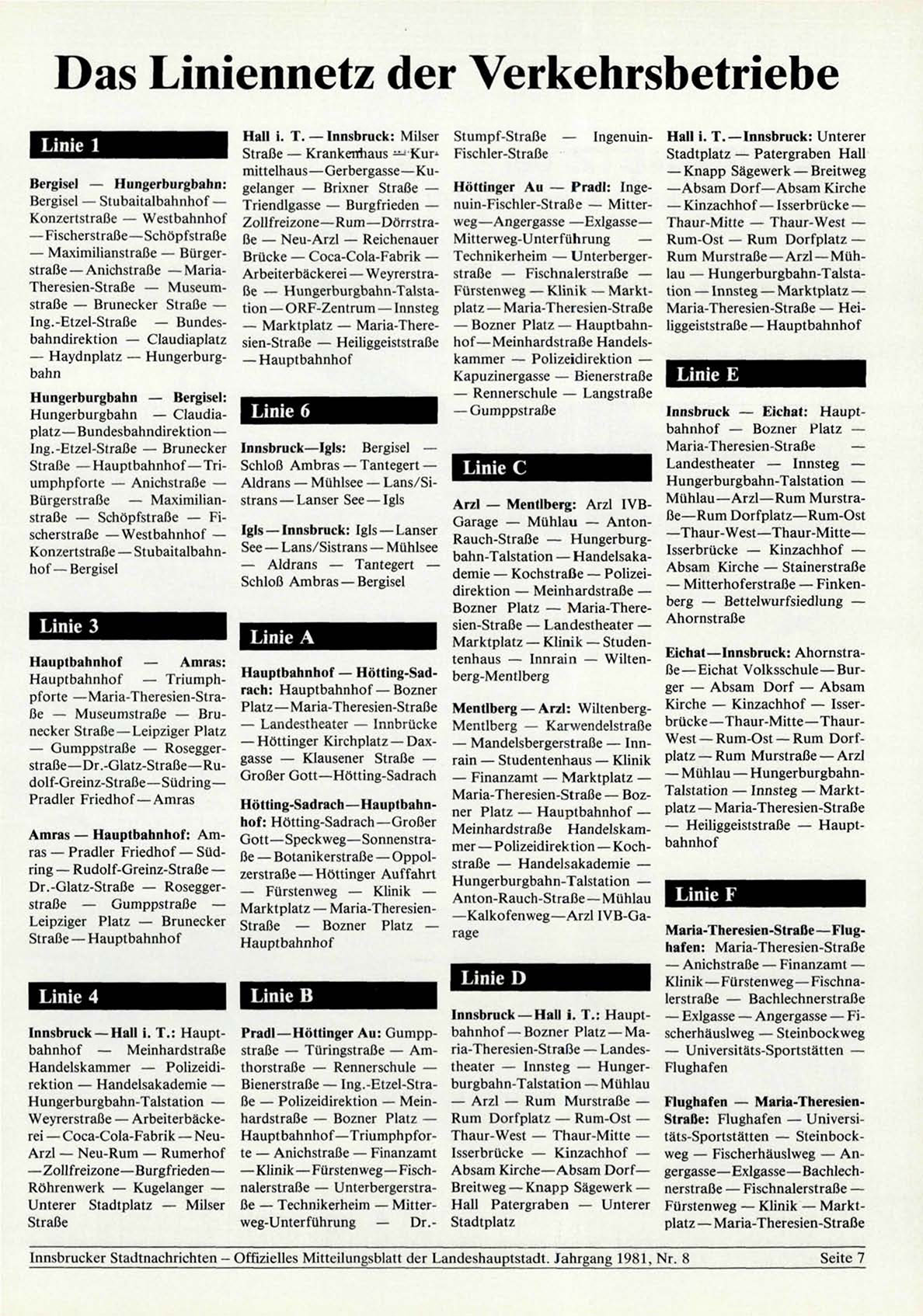 Innsbrucker Stadtnachrichten - Offizielles Mitteilungsblatt der Landeshauptstadt. Jahrgang 1981, Nr. 8
