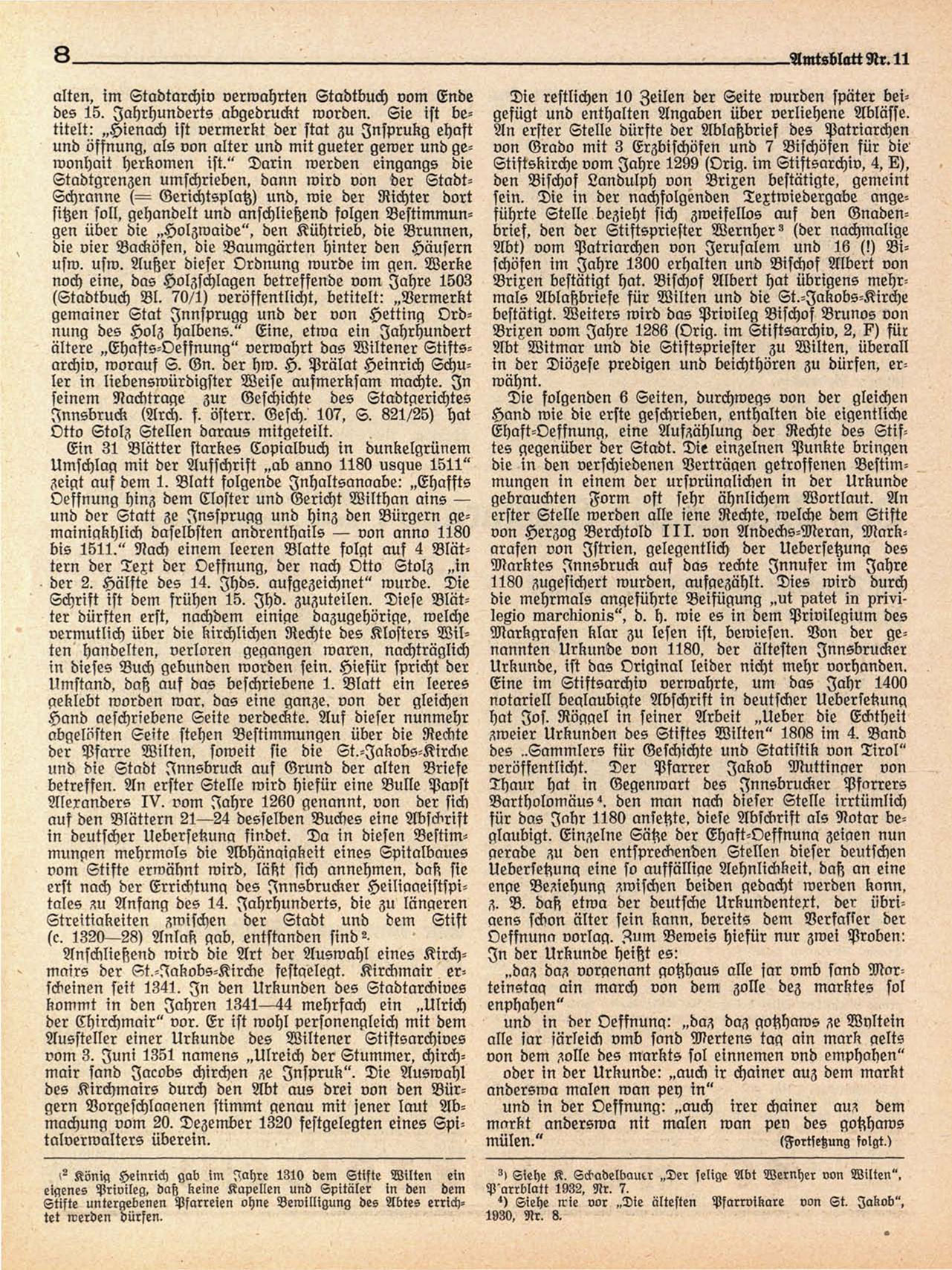 4) Siehe irie vor „Die ältesten Pfarrvikare von St. Jakob",