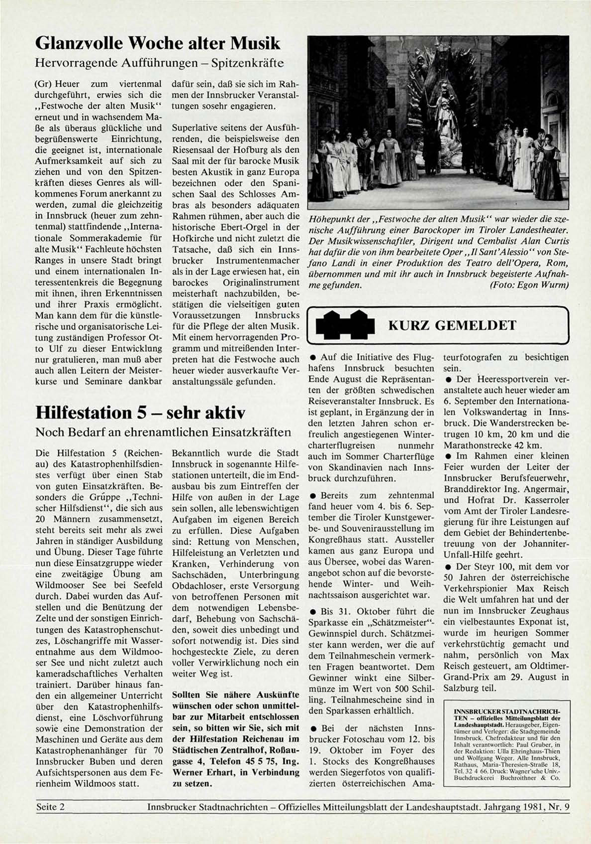 Innsbrucker Stadtnachrichten - Offizielles Mitteilungsblatt der Landeshauptstadt. Jahrgang 1981, Nr. 9