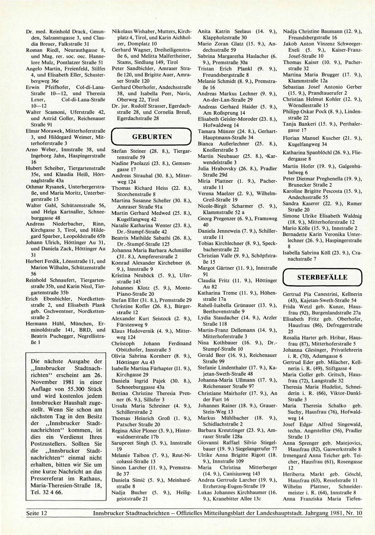 Innsbrucker Stadtnachrichten - Offizielles Mitteilungsblatt der Landeshauptstadt. Jahrgang 1981, Nr. 10