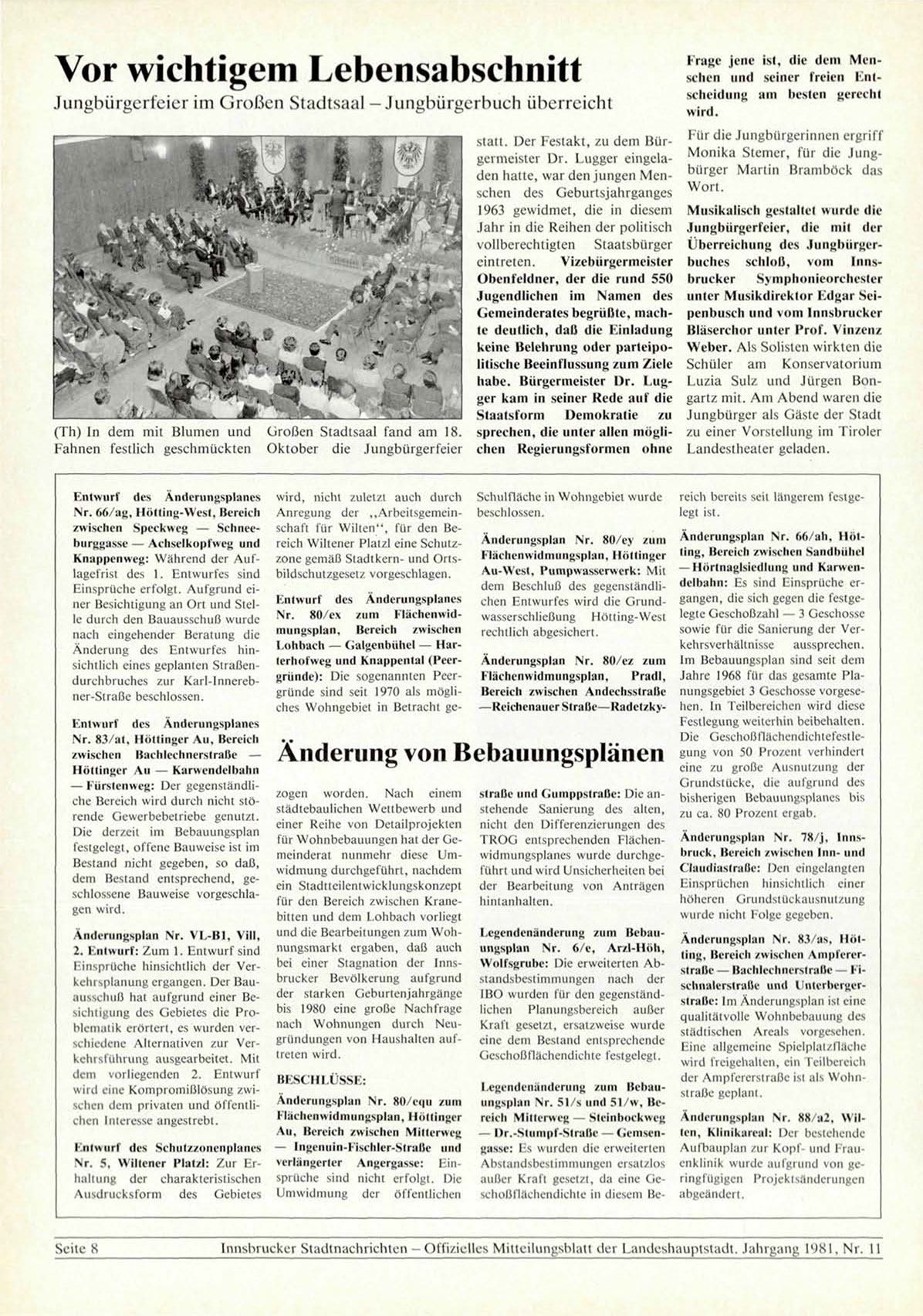 Innsbrucker Stadtnachrichten - Offizielles Mitteilungsblatt der Landeshauptstadt. Jahrgang 1981, Nr. 11