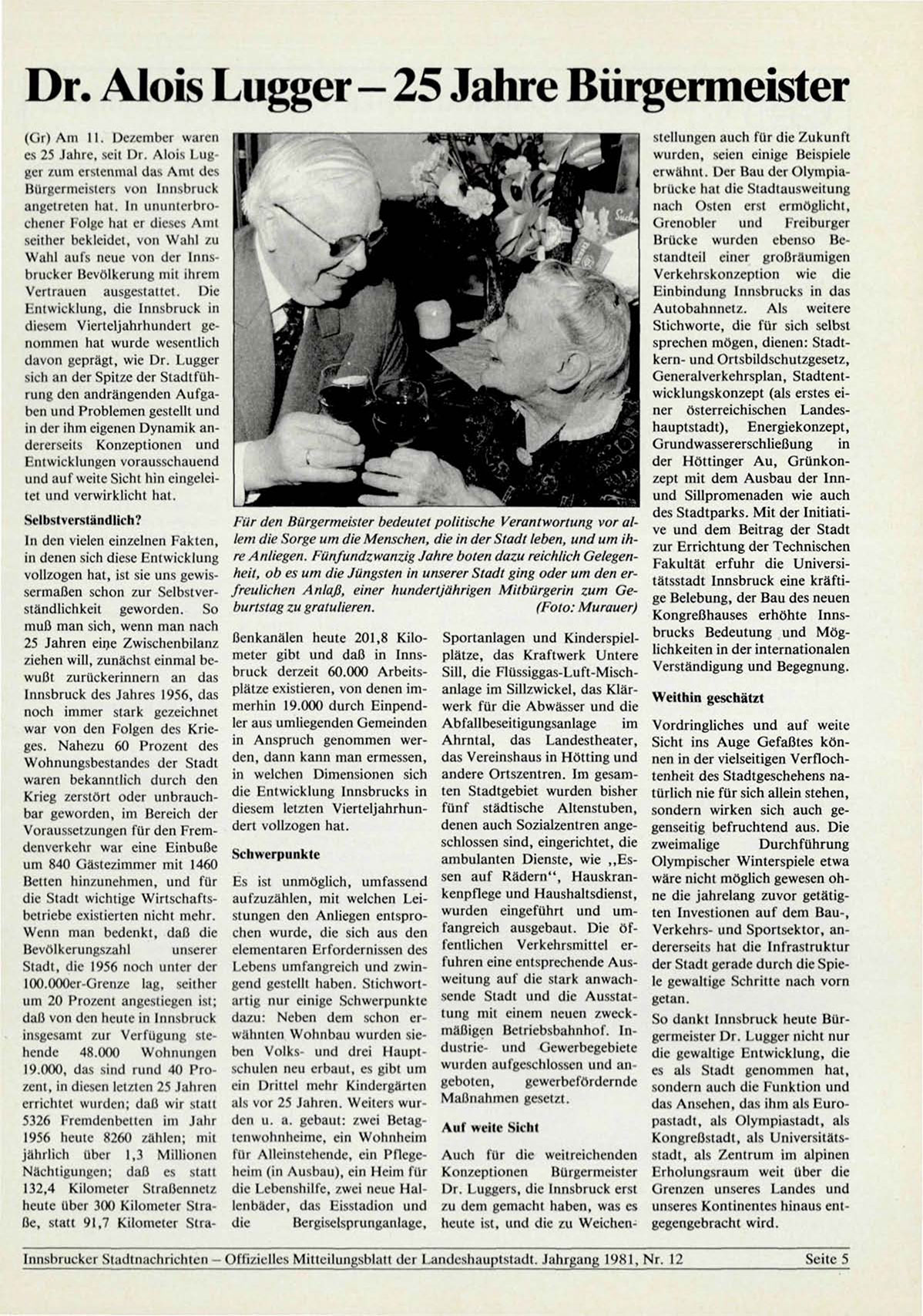Innsbrucker Stadtnachrichten — Offizielles Mitteilungsblatt der Landeshauptstadt. Jahrgang 1981, Nr. 12