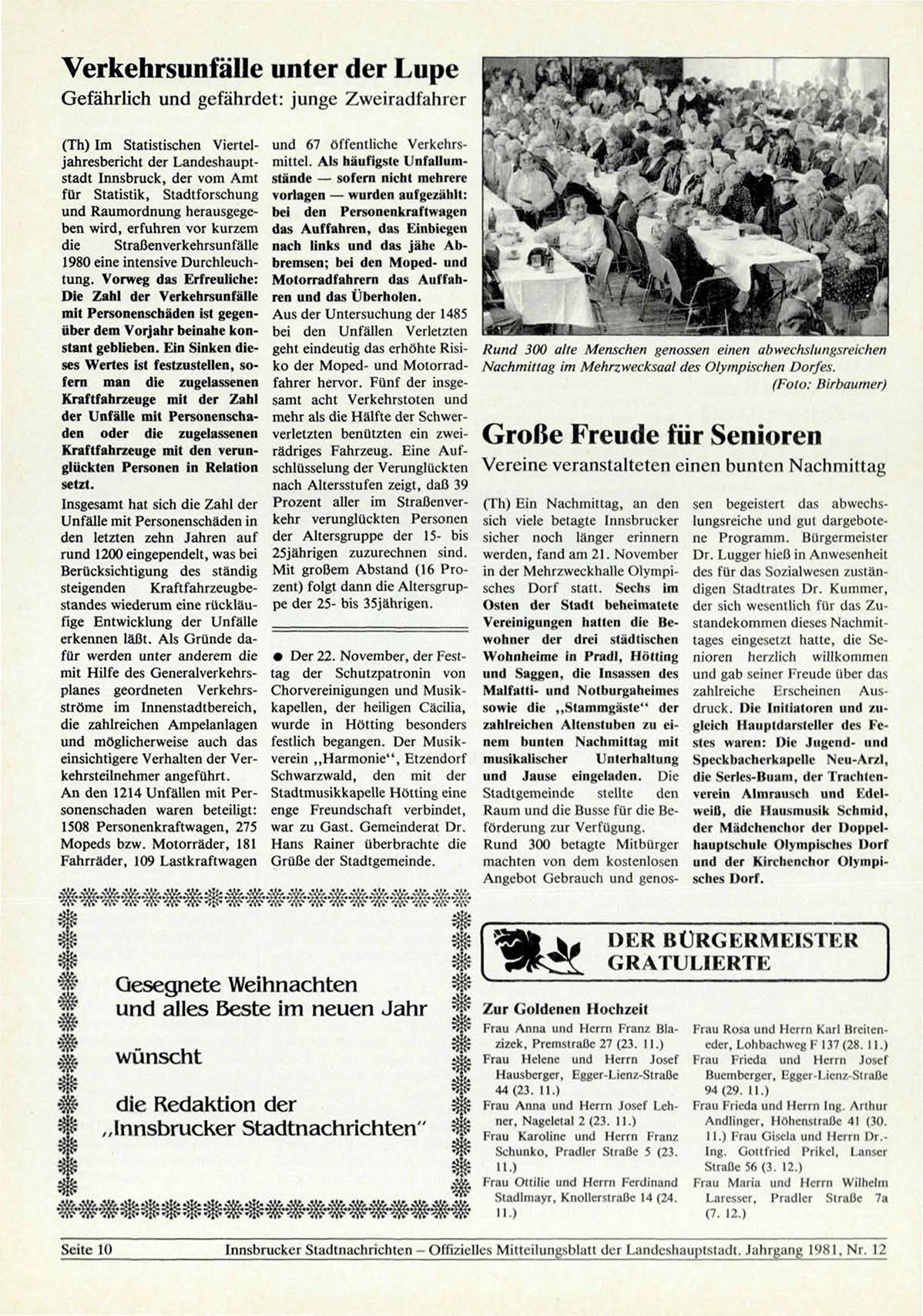Innsbrucker Stadtnachrichten — Offizielles Mitteilungsblatt der Landeshauptstadt. Jahrgang 1981, Nr. 12